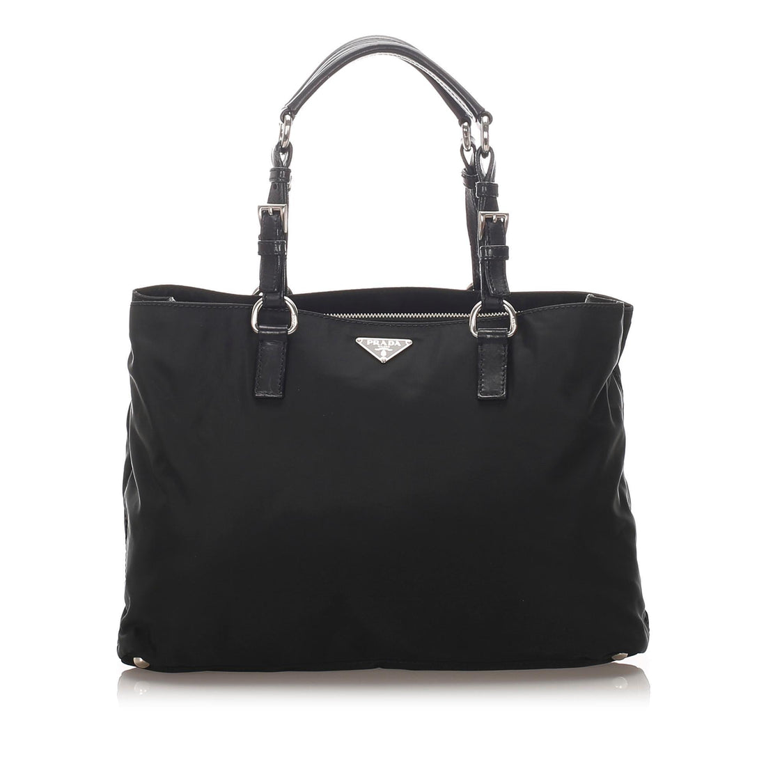 Prada Bag Etiquette Medium Black Blue Studded Nylon Tote