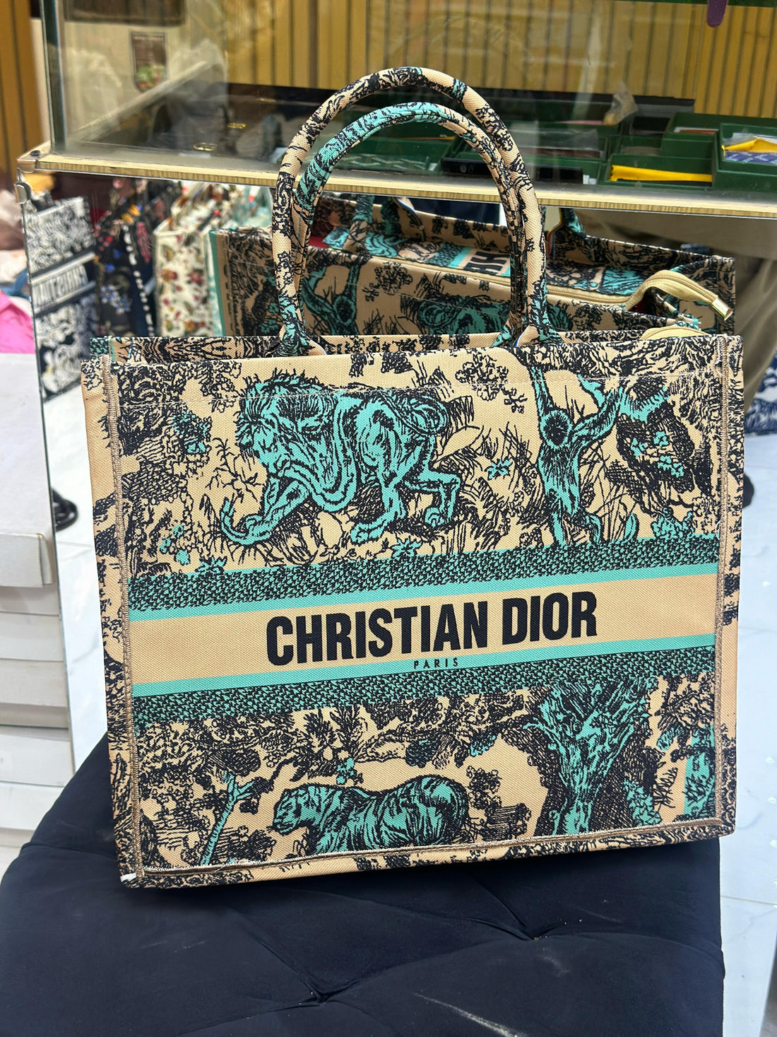 Christian Dior Women Bag High-Quality Denim Tote (Green/Cream/Black)