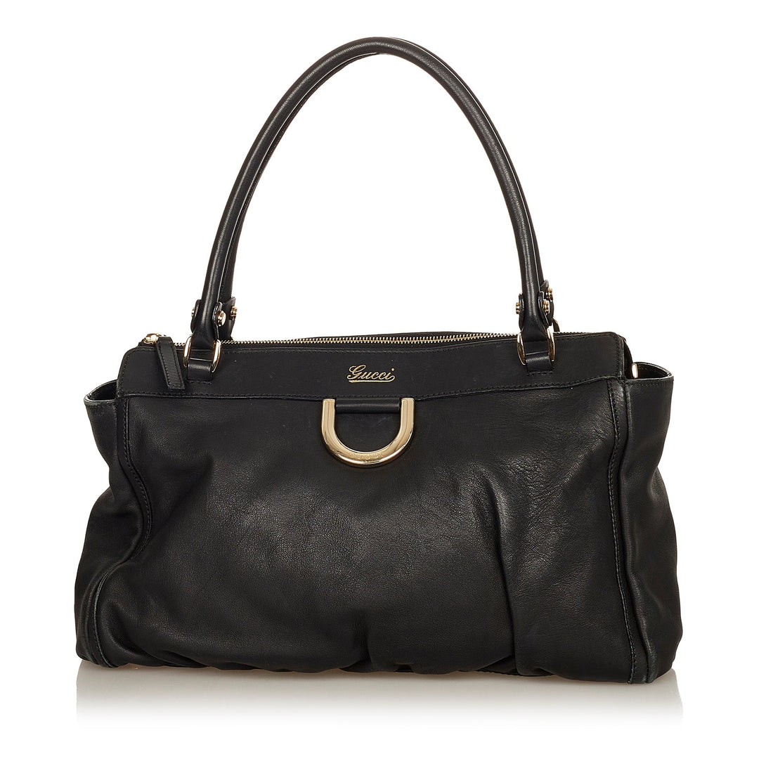This Gucci Abbey D-Ring Tote Bag was crafted from black leather and features rolled leather...