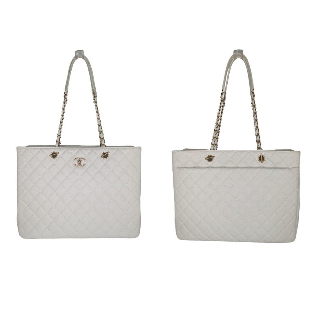 Chanel White Caviar Classic Timeless Tote This large classic tote is crafted of diamond quilted caviar...