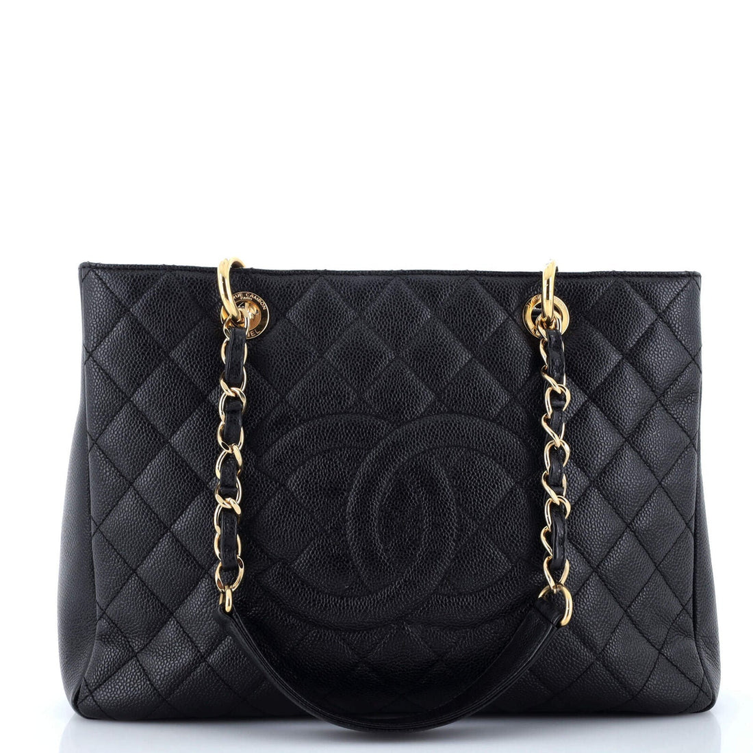 Introducing the iconic Chanel Grand Shopping Tote in luxurious quilted caviar leather. This timeless piece...