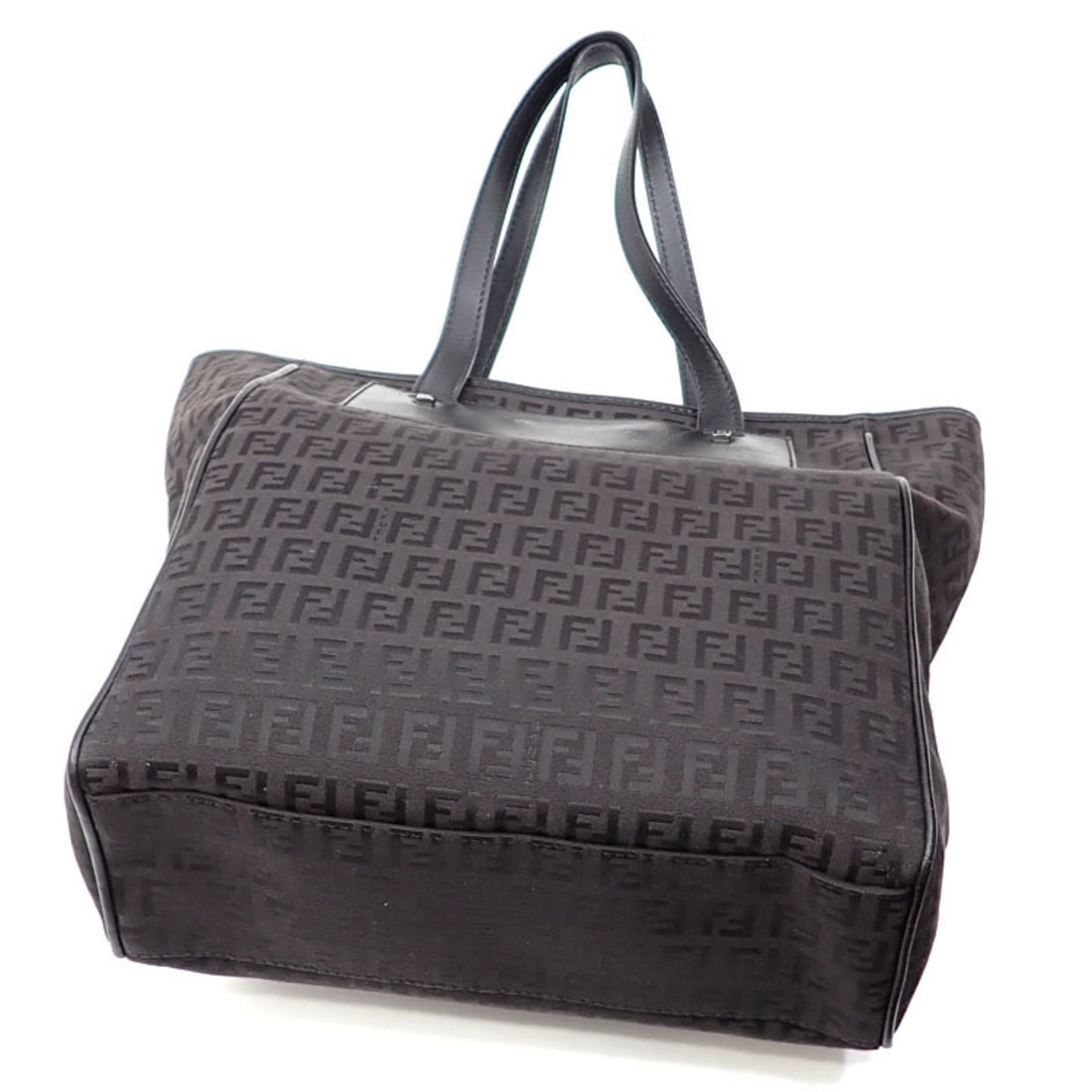 FENDI Tote Bag Zucchino Women's Black Brown Canvas Leather 8BH174 Hand