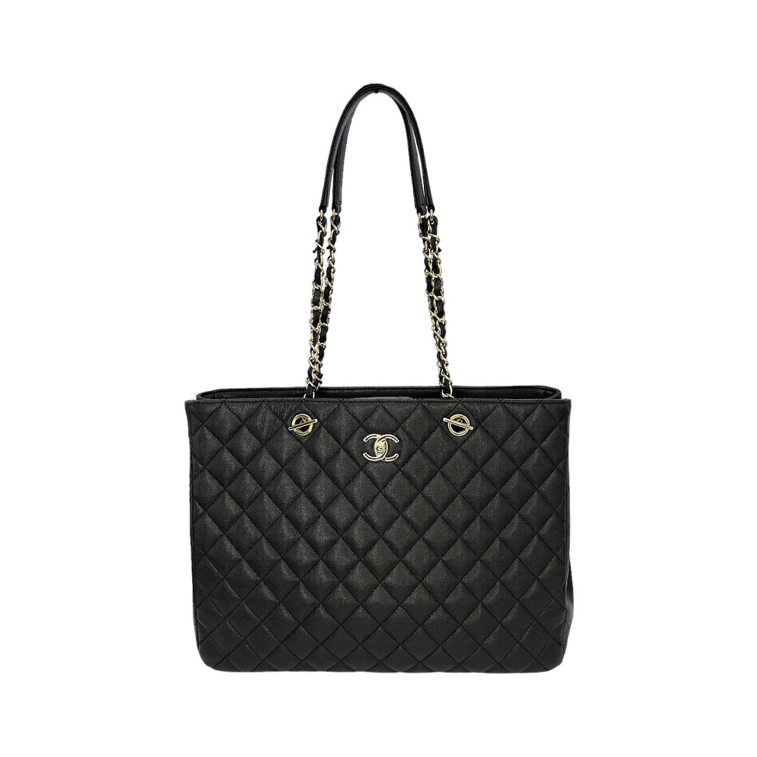 CHANEL Chain Shoulder Tote Bag Beige Caviar