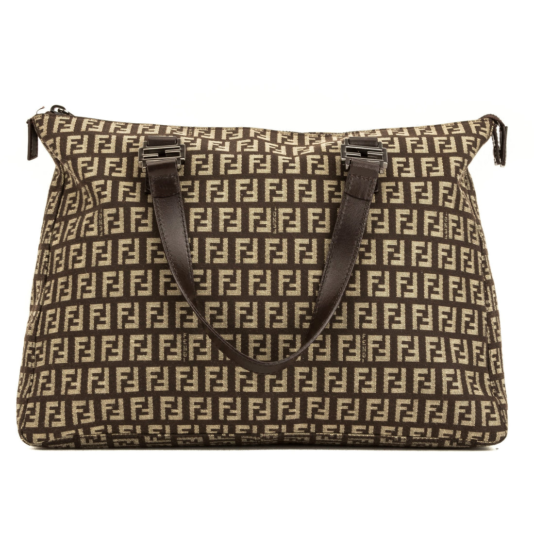 This , Fendi Zucchino Shopping Tote features the classic FF mono exterior with brown leather...