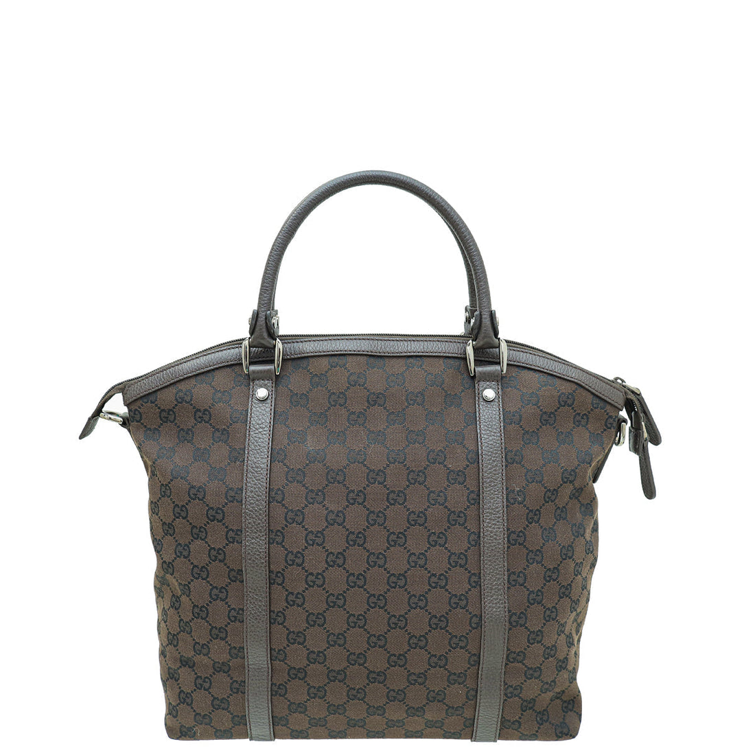 Material: Chocolate GG Canvas with Leather Trim Hardware: Silver Features: Pockets: Interior Zipper Pocket, 2 Interior Flat...