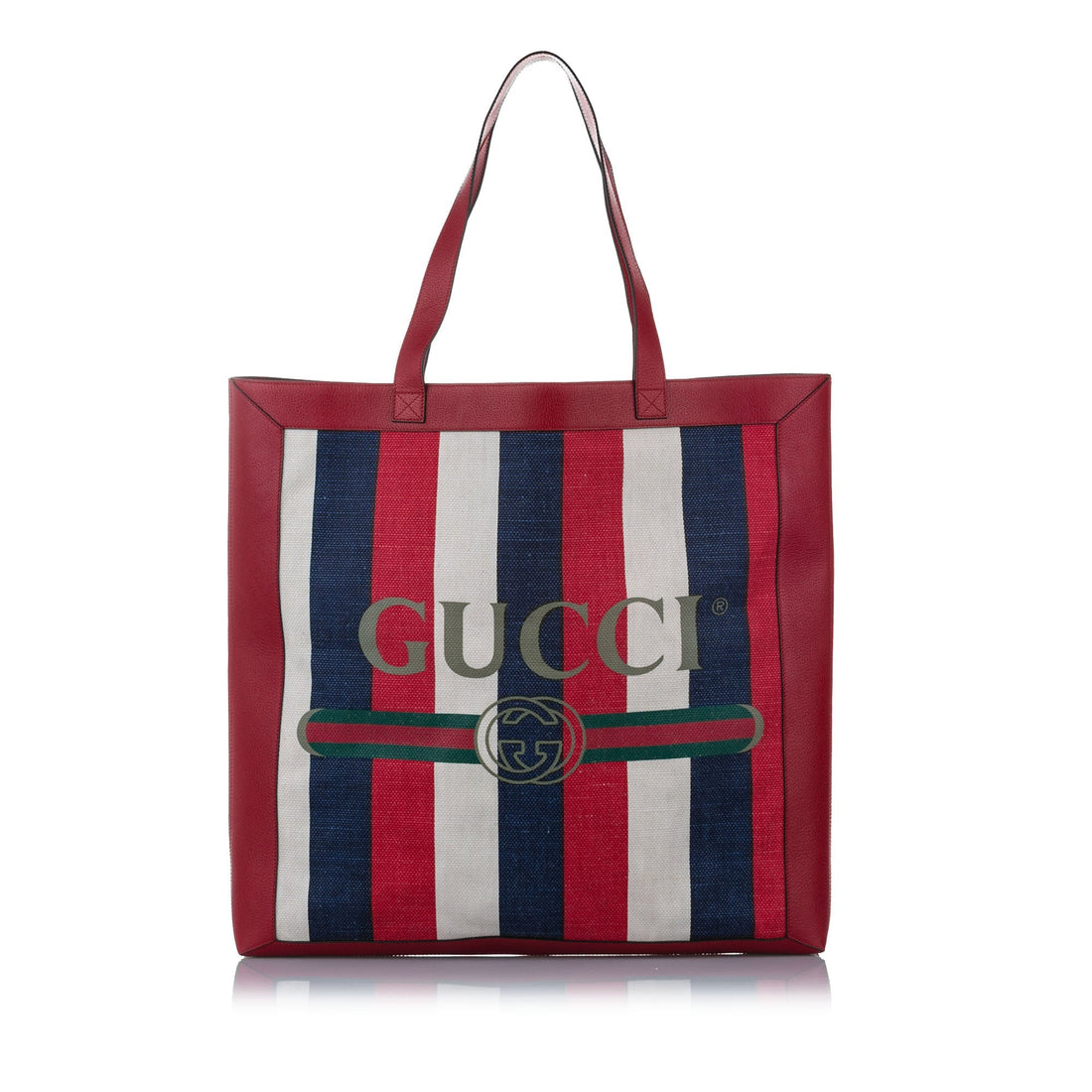 This elegant luxury tote was fabricated in gucci logo canvas in red