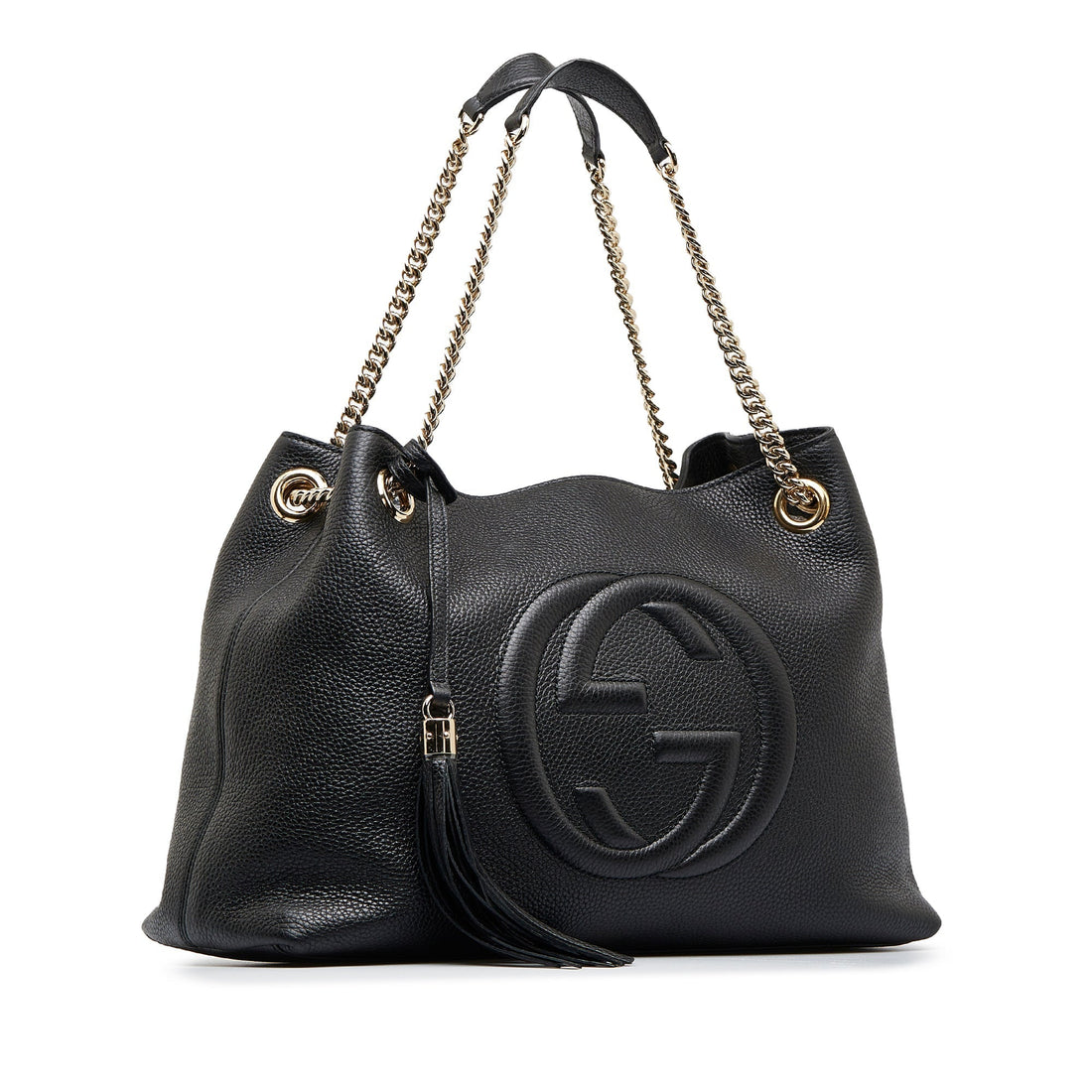 This beautiful Gucci Soho Chain Tote is made of black leather and features gold-tone details...
