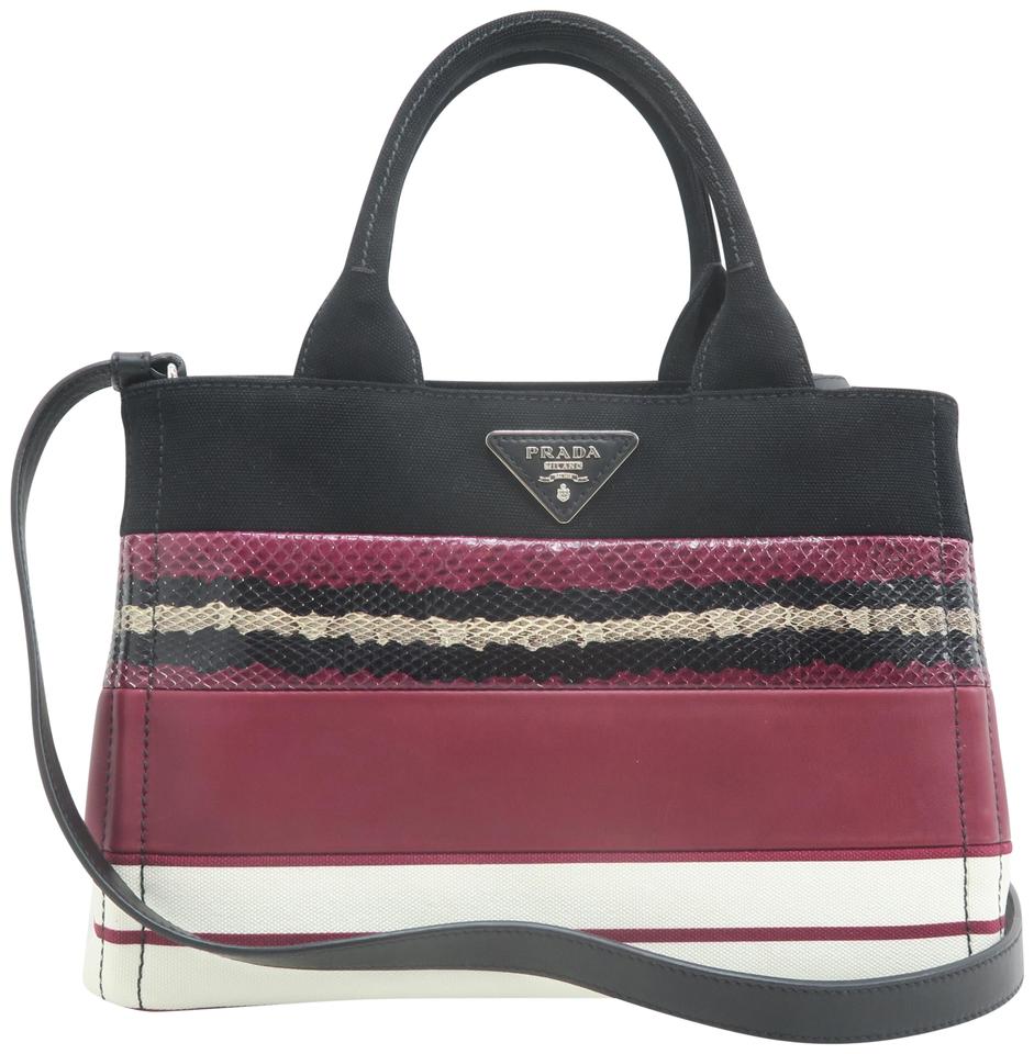 Prada Multicolor Canvas Snakeskin and Leather Tote
