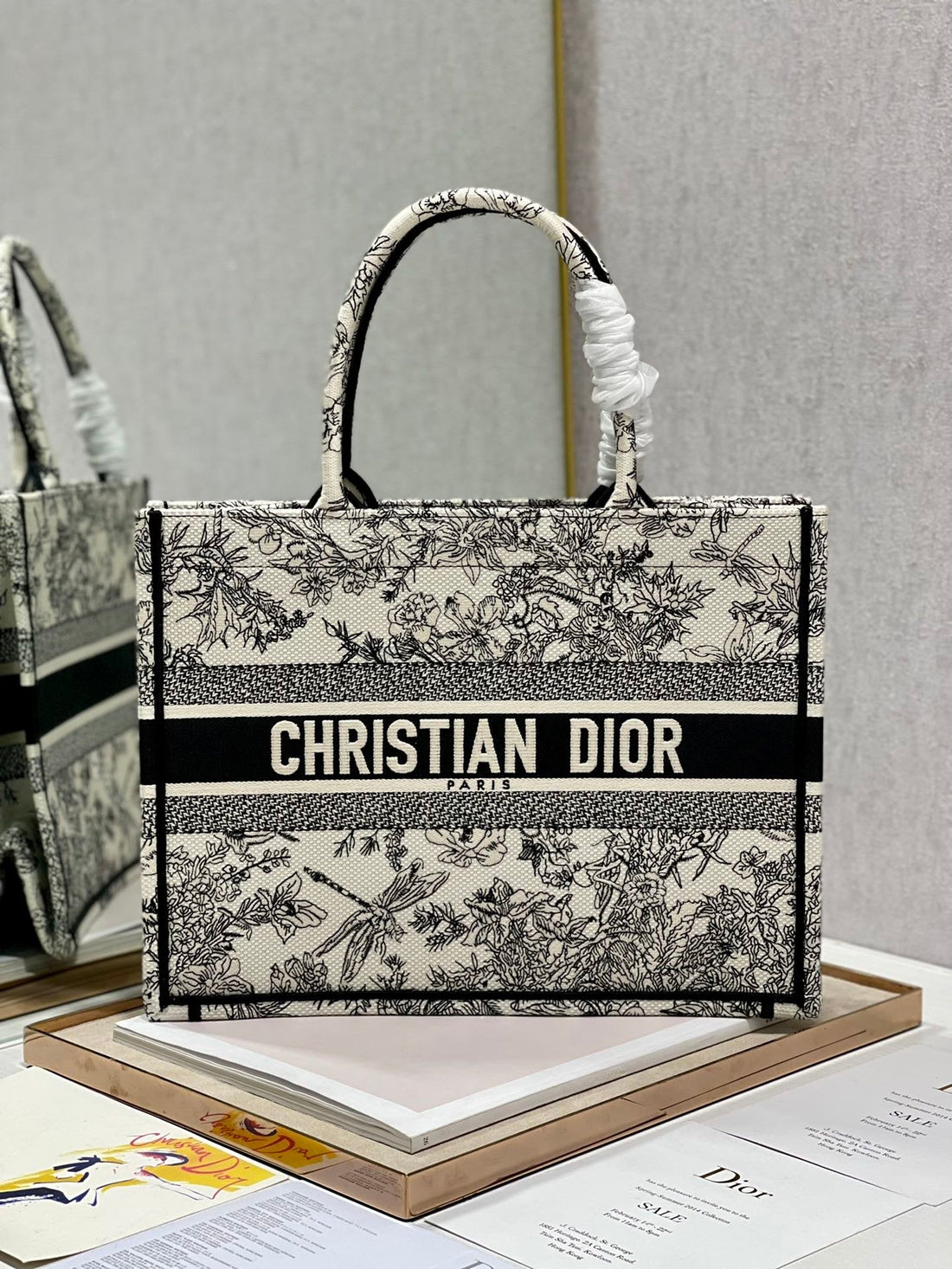 DI Medium Book Tote Bag, Black/White, For Women Women’s Handbags, Shoulder Bags, 36cm CD M1296ZRHZ_M941
