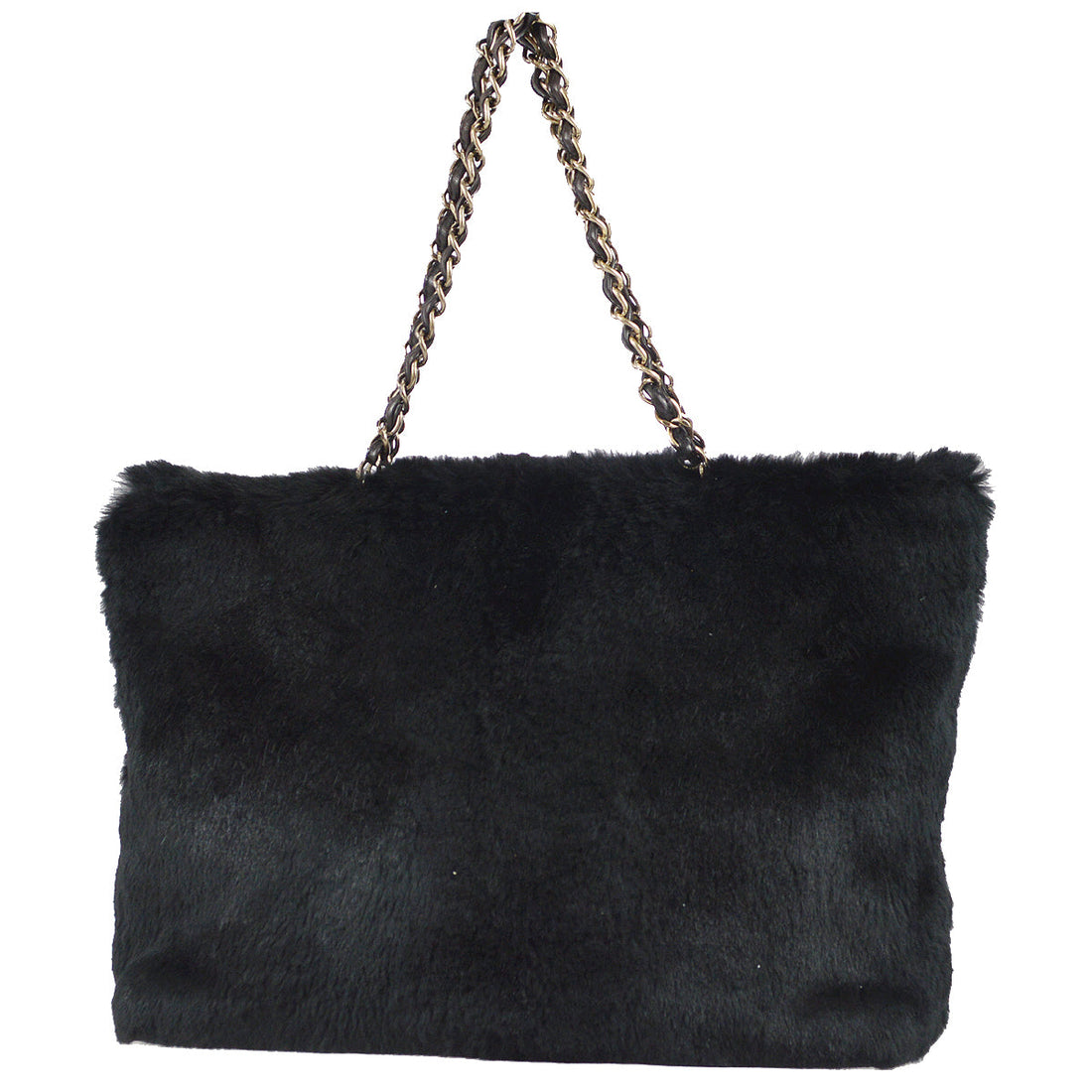 Chanel Chain Shoulder Tote Bag Black Lambskin