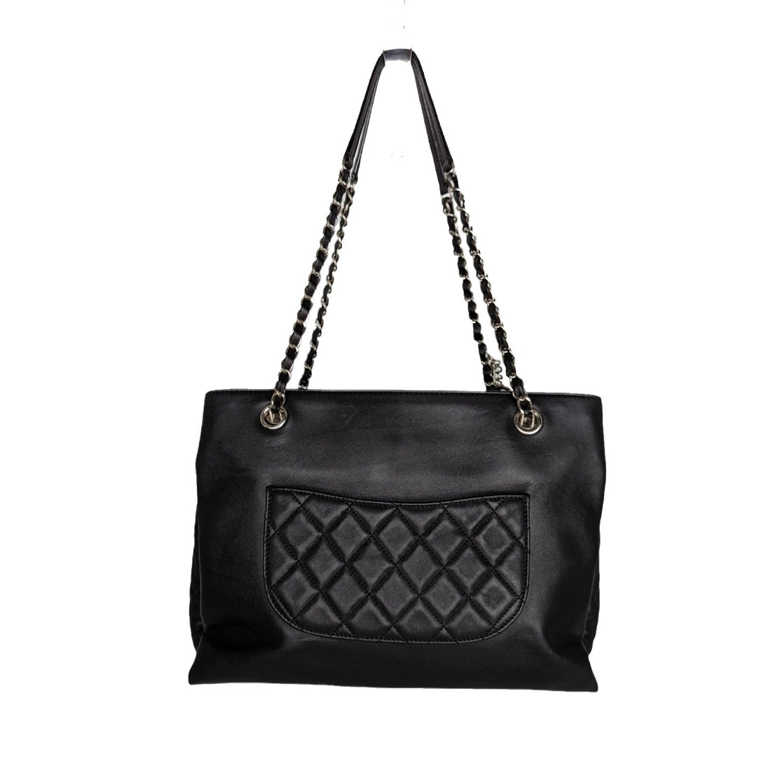 CHANEL Petite Shopping Tote PST Chain Hand Tote Bag Black Caviar Pocket Outside: Pocket x1...