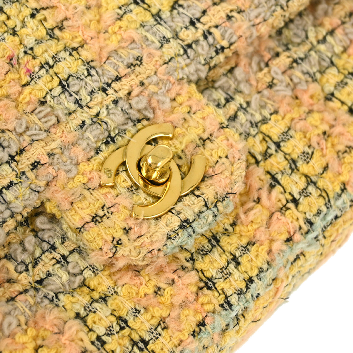 Chanel Yellow Tweed Classic Single Flap 2 in 1 Hand Bag Set