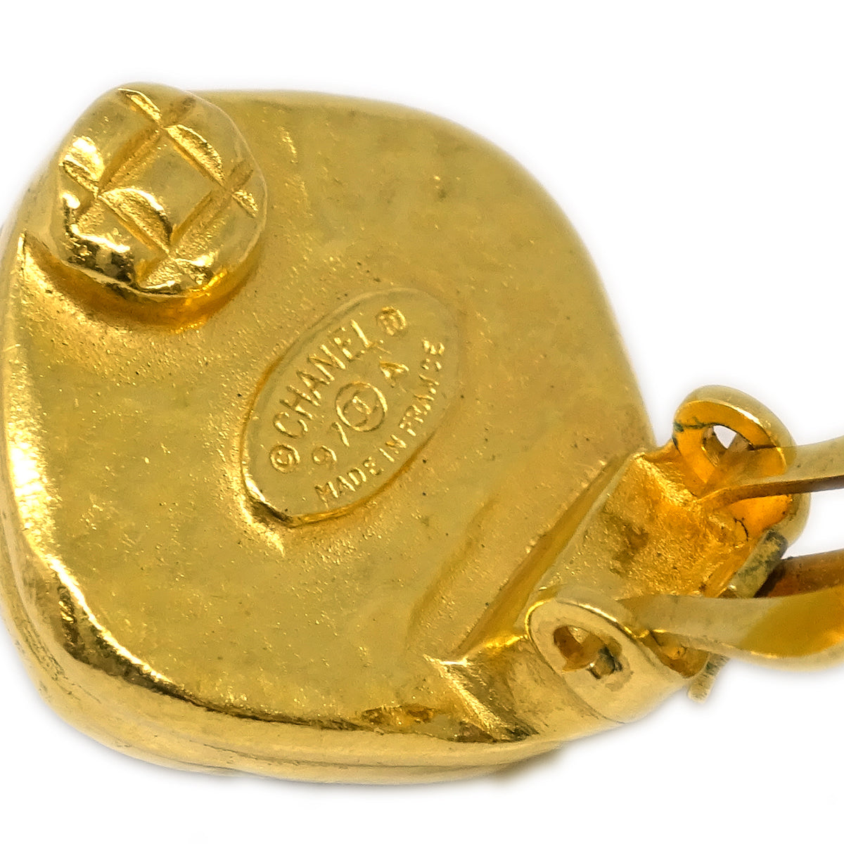Chanel Rhombus Stone Earrings Clip-On Gold 97A