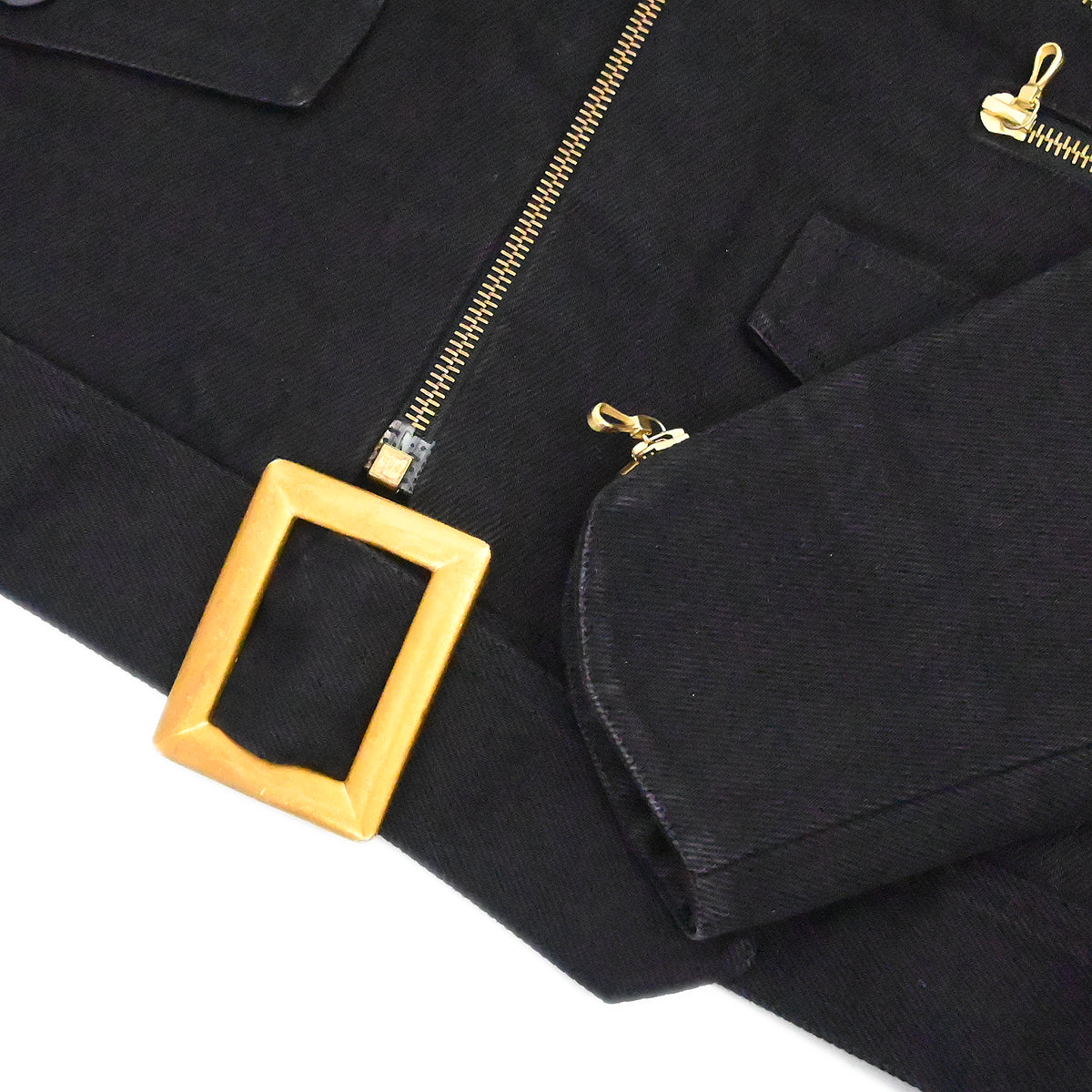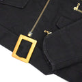 Scuffs and discoloration. Metal fittings have scratches and dirt. Scuffs and discoloration on the sleeves and the collar. Tag is missing. |