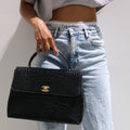 CHANEL * 1997-1999 Black Crocodile Kelly 30