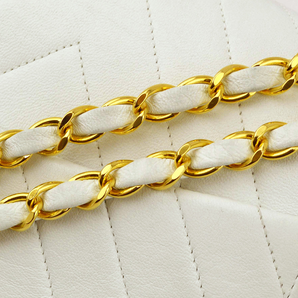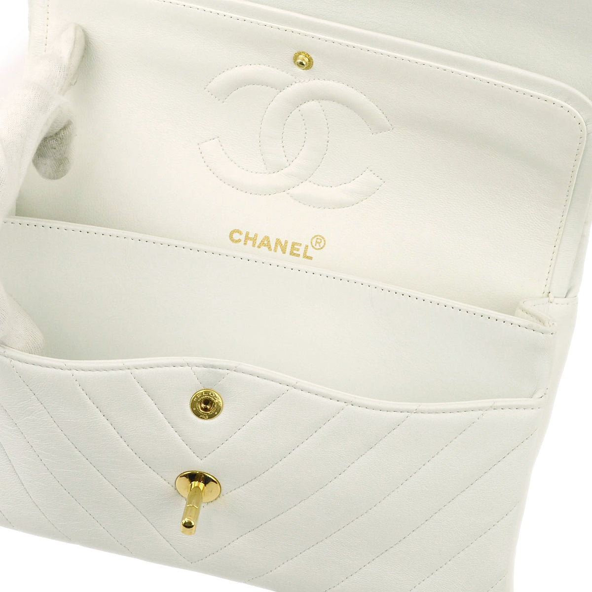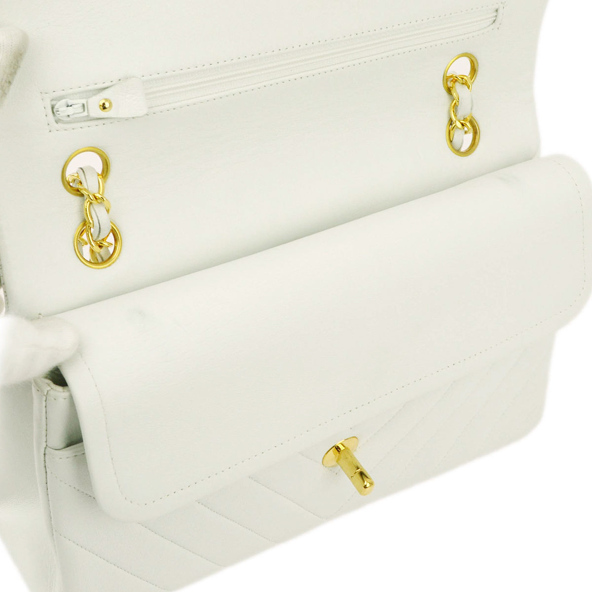 Chanel White Lambskin V Stitch Medium Classic Double Flap Shoulder Bag