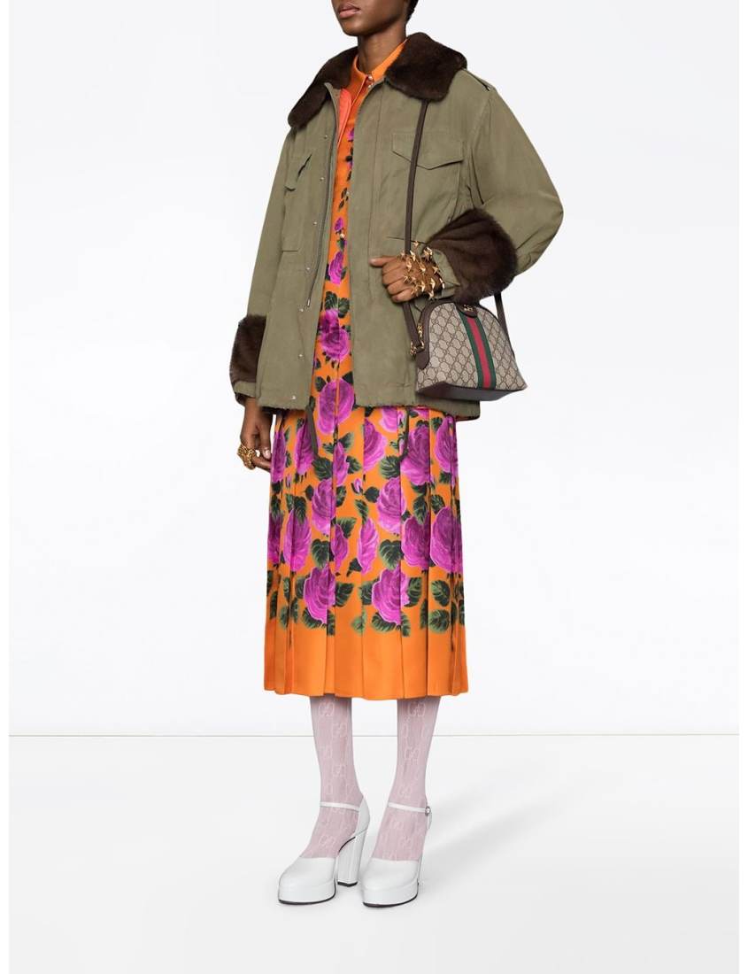 Red and green webbing with gold tone accessories double G zipper head decoration double G pendant built-in open pocket and smartphone pocket adjustable shoulder strap (44 cm high) zipper buckle (this item is packaged in a dust bag or box)