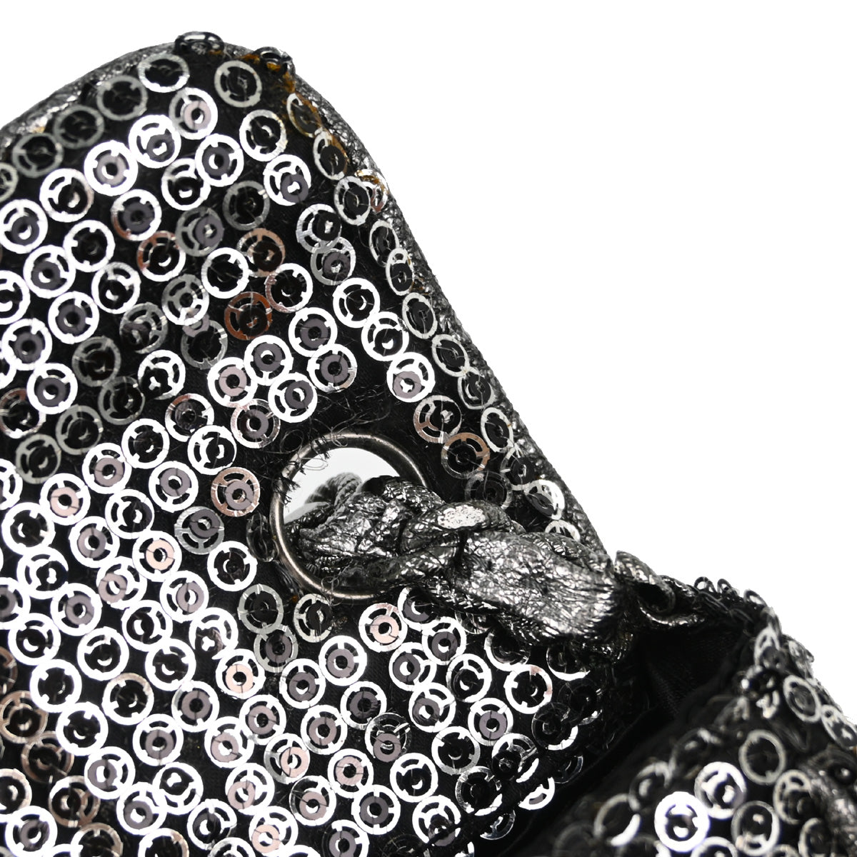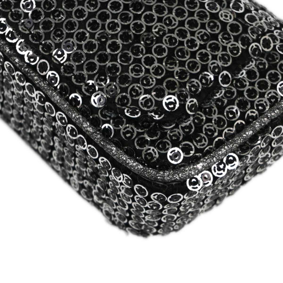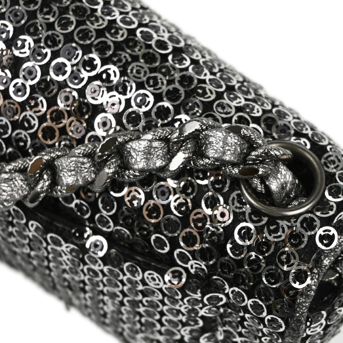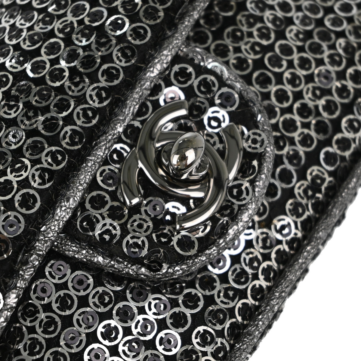 Chanel Silver Black Sequins Classic Single Flap Shoulder Bag