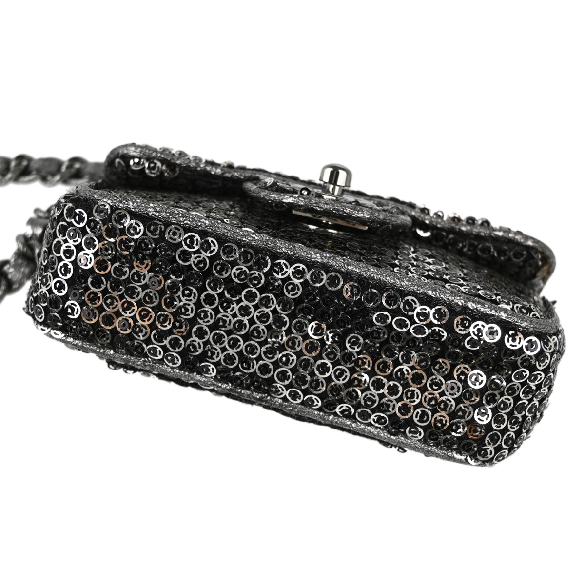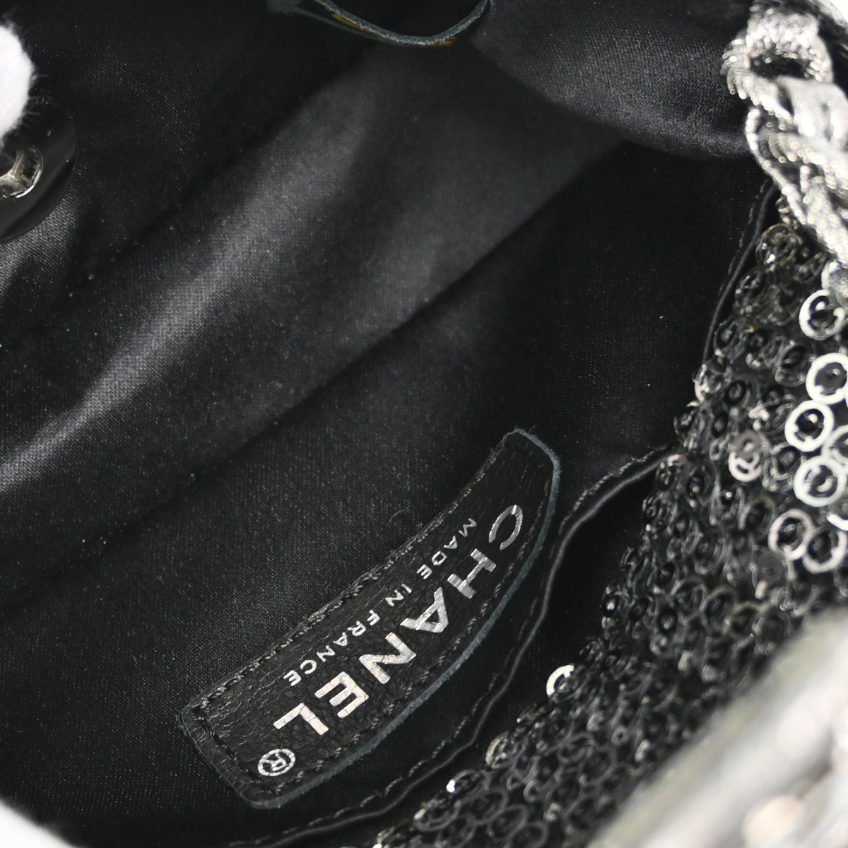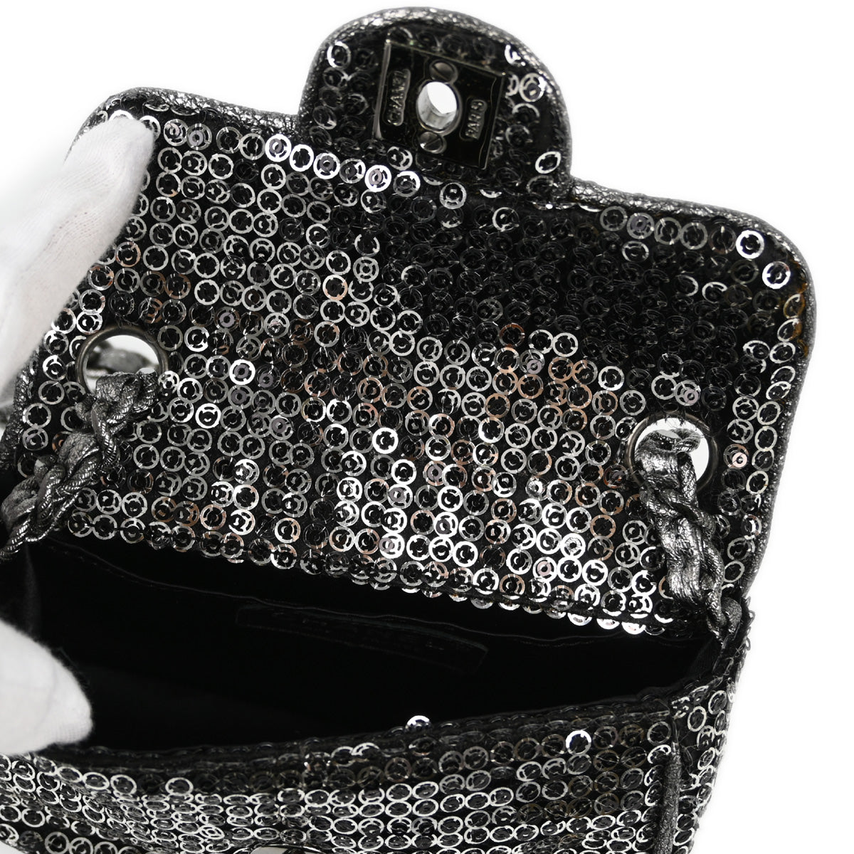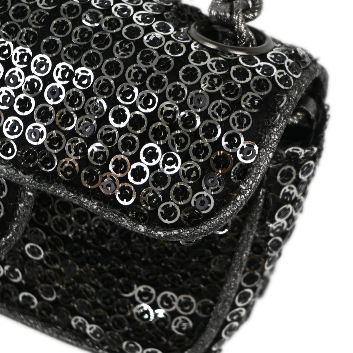 Chanel Silver Black Sequins Classic Single Flap Shoulder Bag