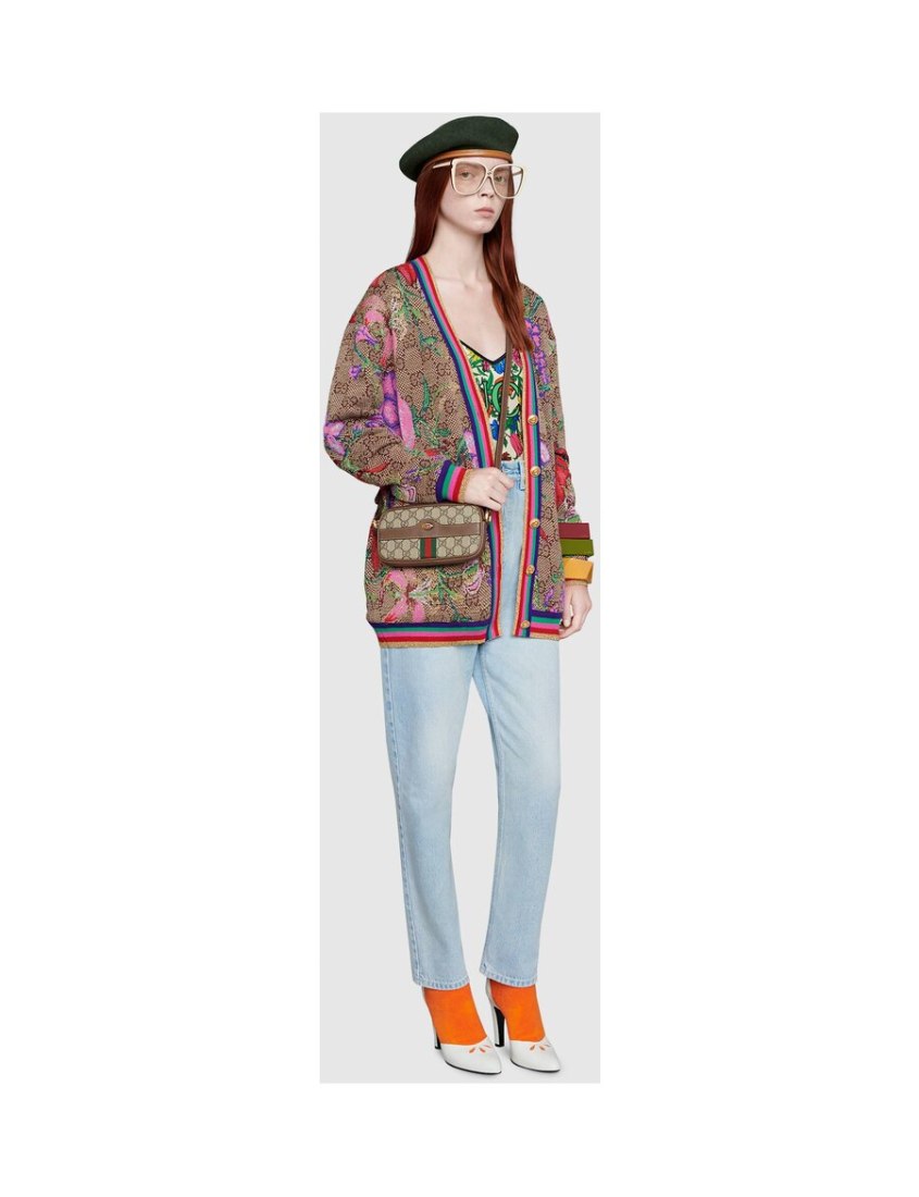 Gold tone accessories red and green webbing trim metal double G oval enamel details suede texture microfiber lining two card compartments adjustable leather shoulder strap (60 cm high) zipper closure (this item is packaged in a dust bag or box)