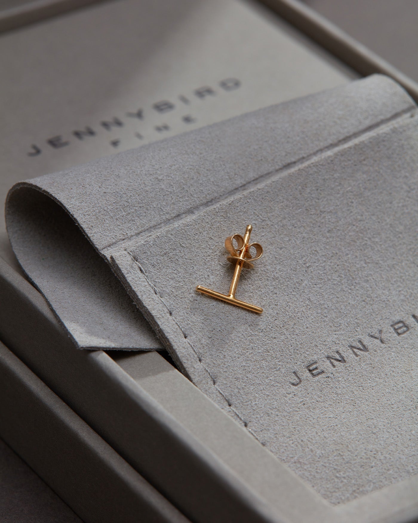 A simple gold bar stud that lends a whisper of shine to your ear stack. Sold as a pair or individually.
