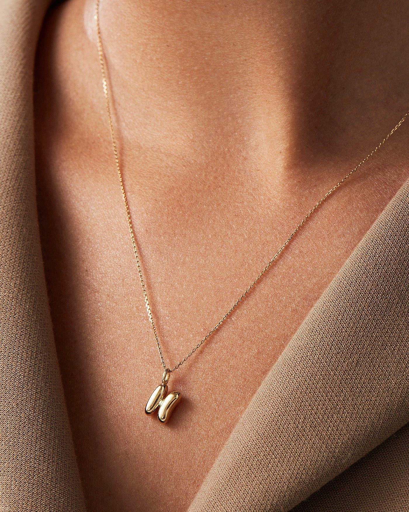 14K Gold Bubble Letter Necklace - H