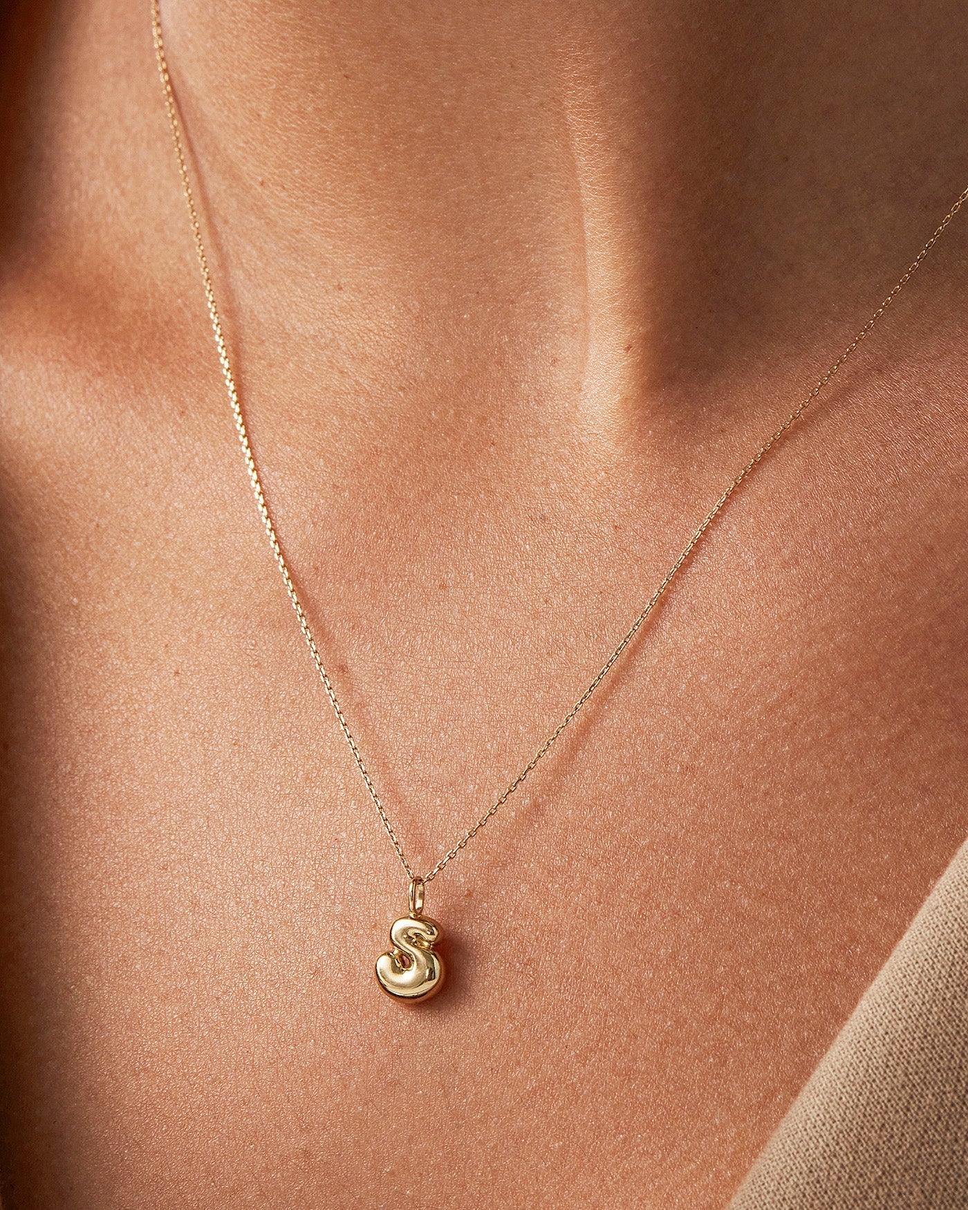 14K Gold Bubble Letter Necklace - S