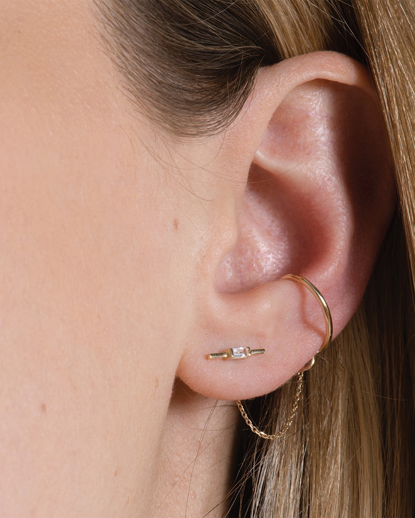 Also shown: Sila Ear Cuff Set, 14K Gold Bar Stud, 14K Gold White Sapphire Stud, Teeni Toni Huggie Earrings, and 14K Gold Huggie.