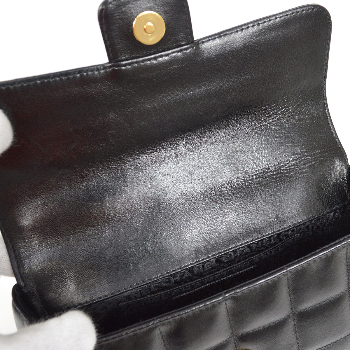 CHANEL 2003-2004 Camellia Choco Bar Shoulder Bag Mini Black Lambskin