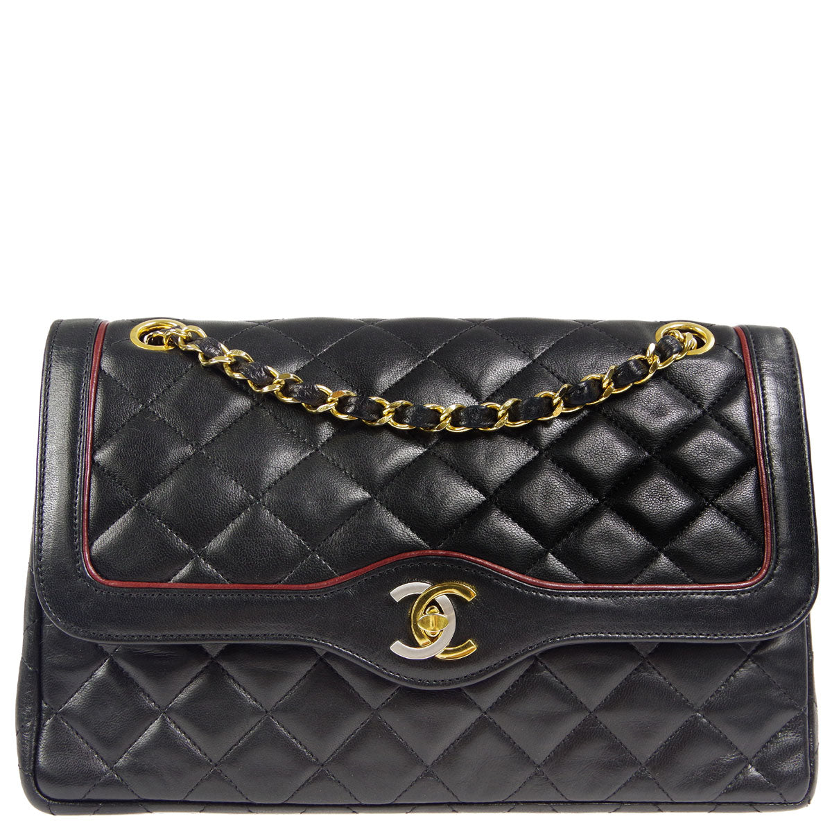 | Chanel Paris Limited Double Flap Medium Chain Shoulder Bag Black Bordeaux Lambskin | |
