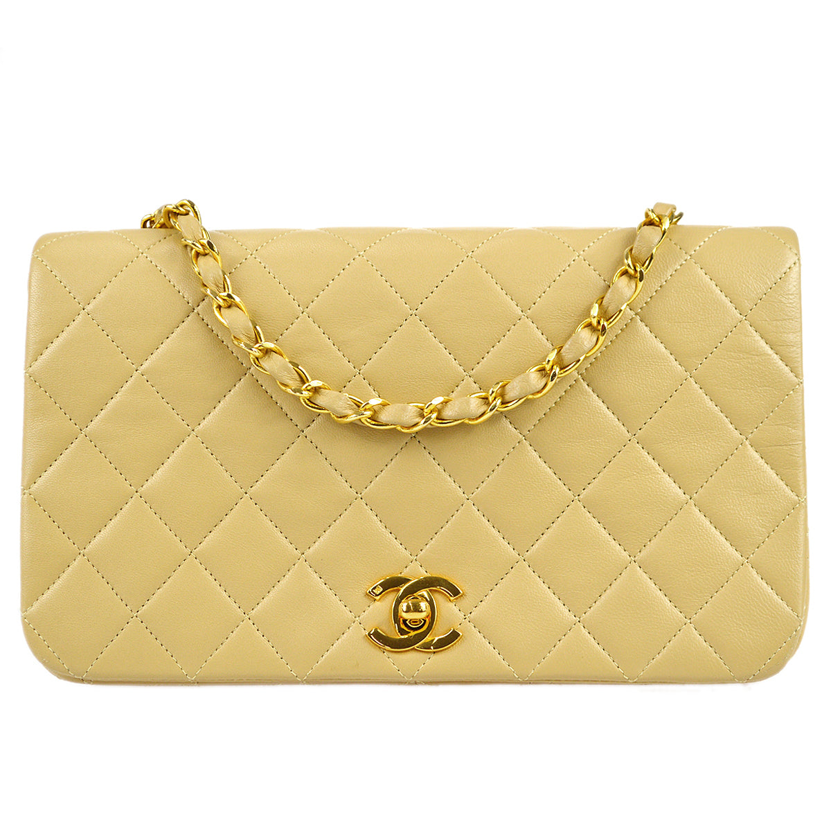 | Chanel Full Flap Chain Shoulder Bag Beige Lambskin | |