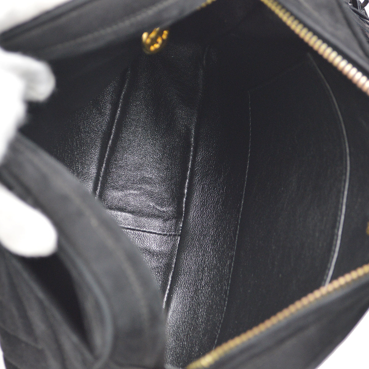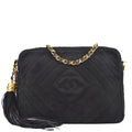 Chanel Chain Shoulder Bag Fringe Black Suede