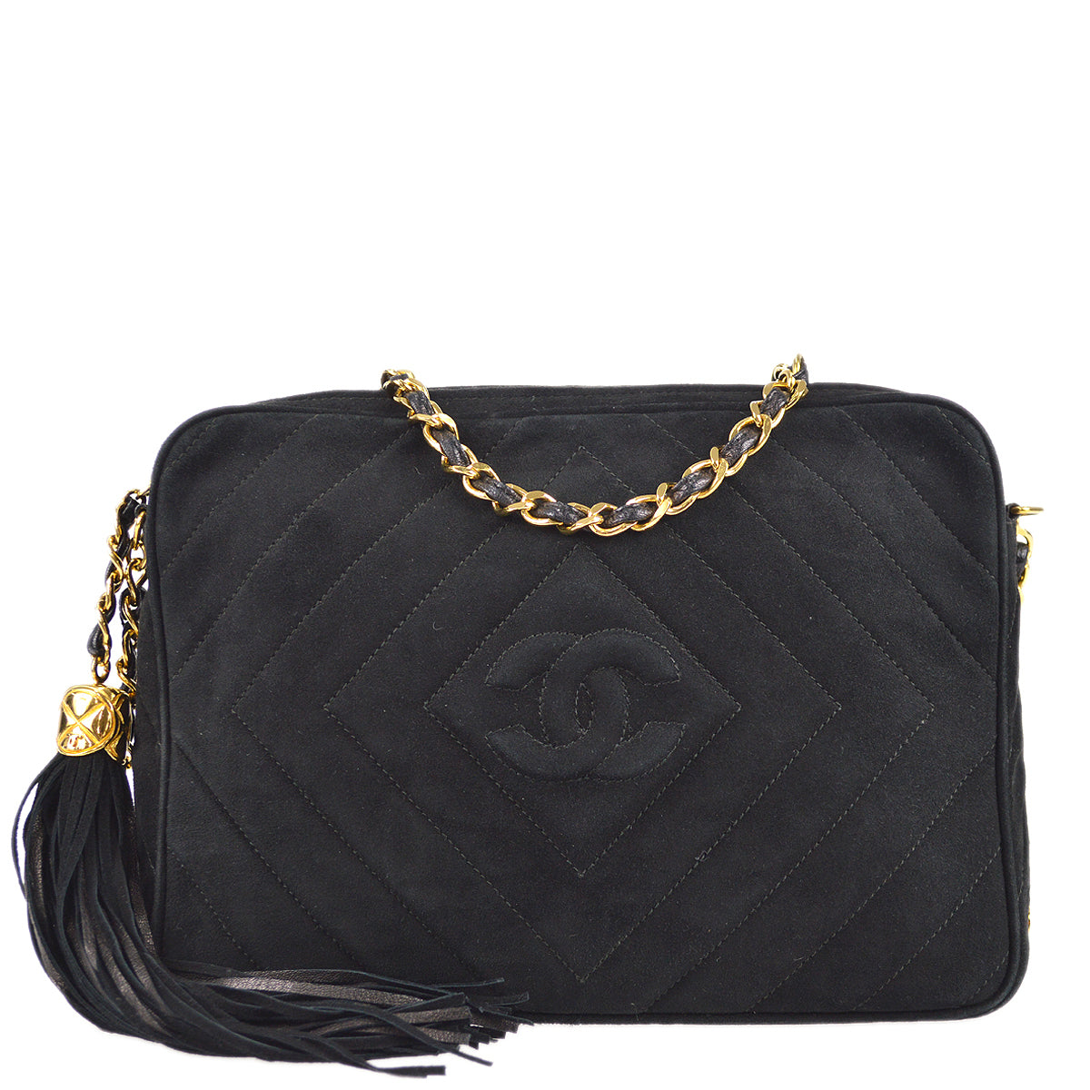 | Chanel Chain Shoulder Bag Fringe Black Suede | |