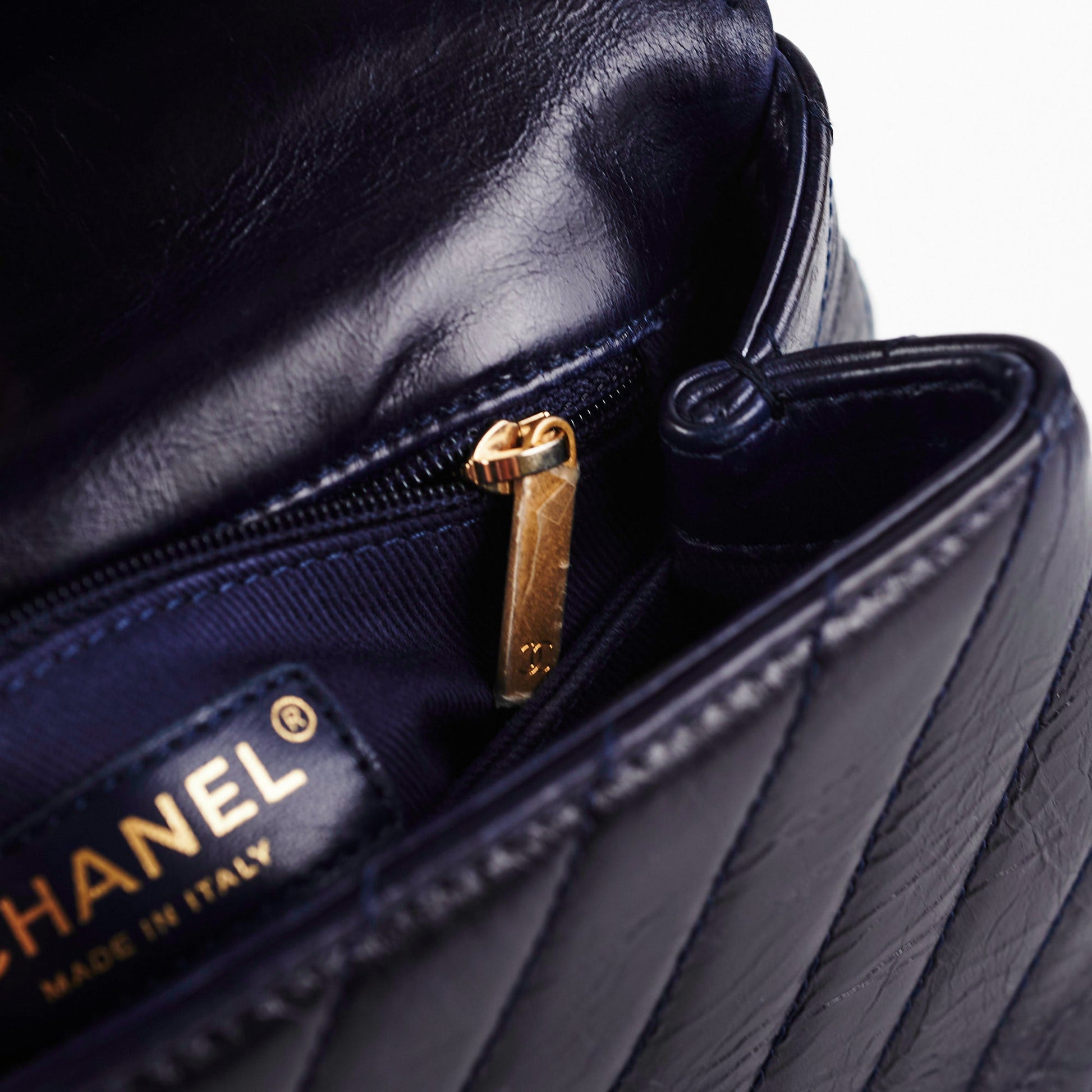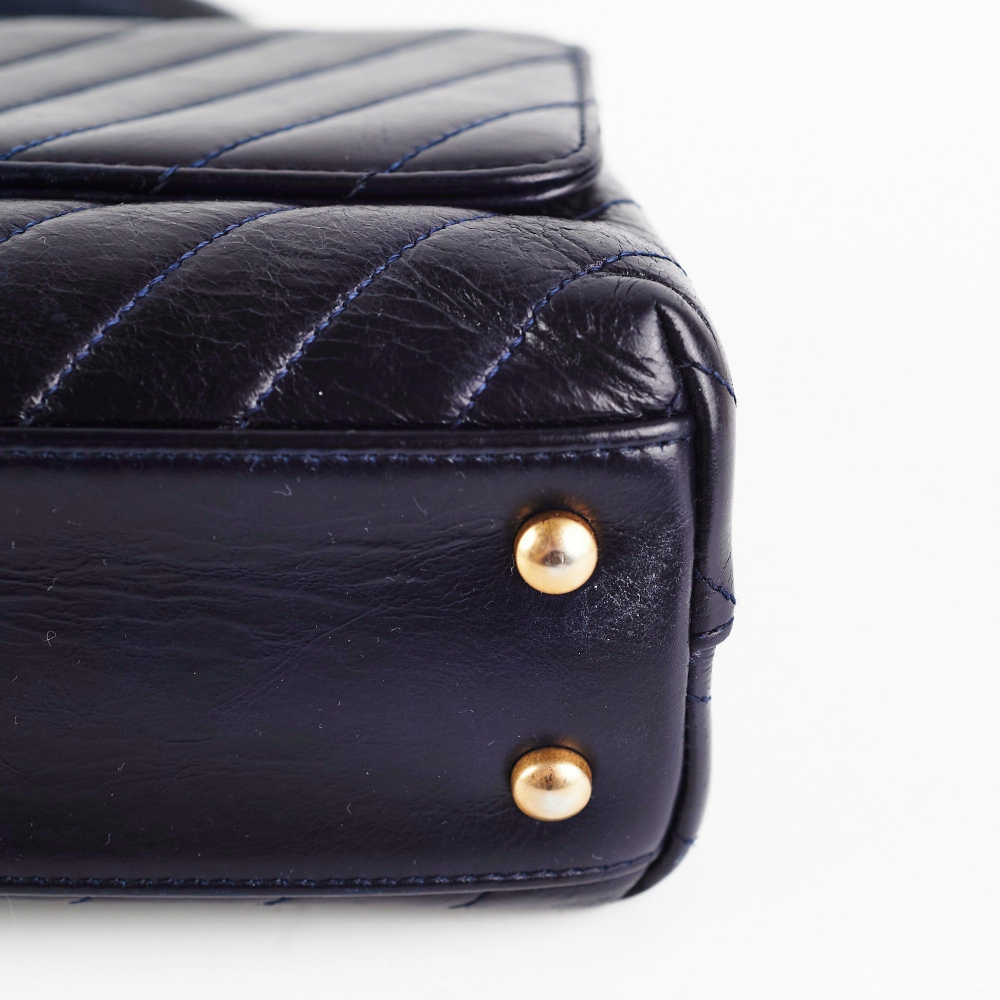 Condition: 8.5/10 Great Condition - light hairline scratches and tarnishing on hardware, leather has been retouched (originally blue), creasing throughout leather, light nail marks throughout