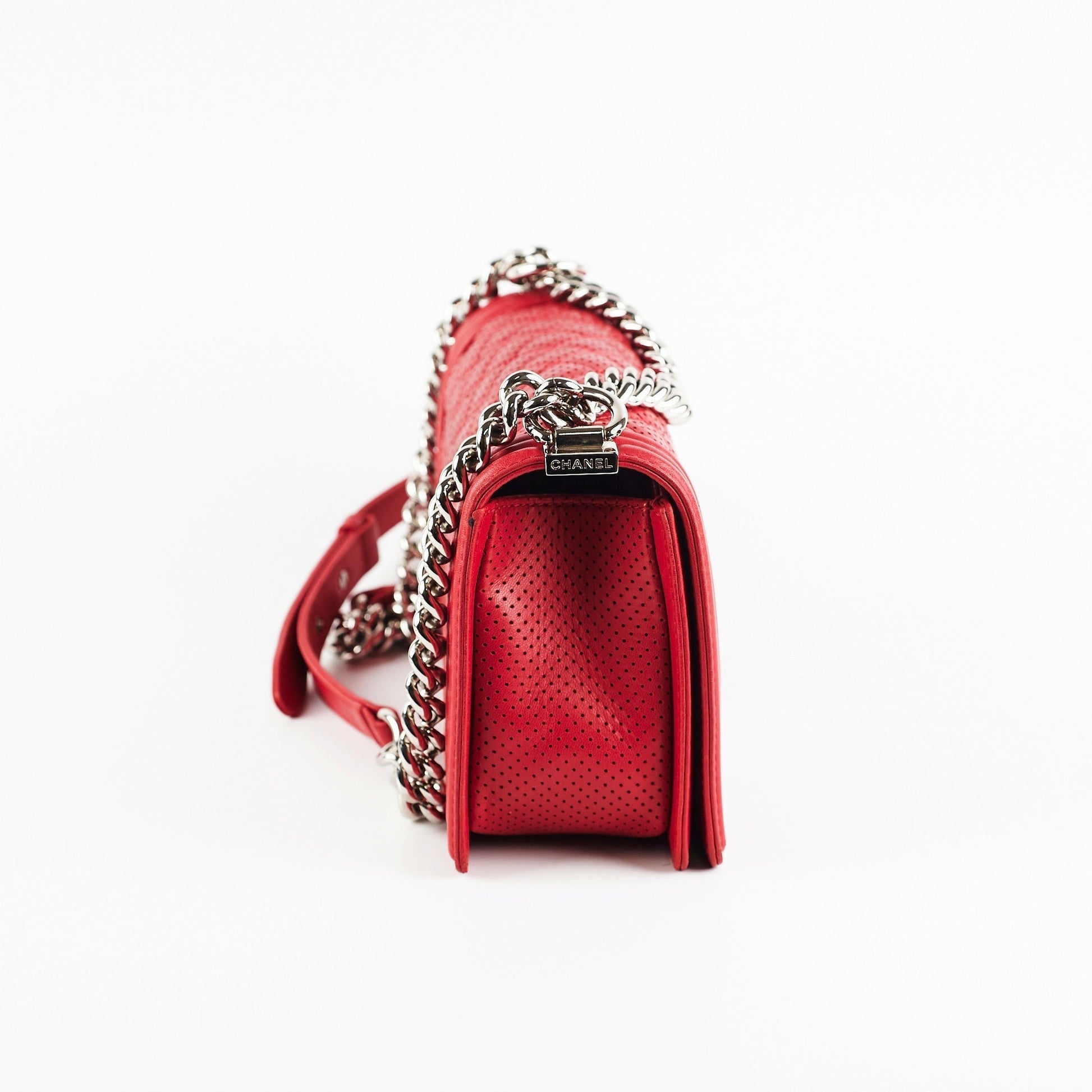 Chanel Old Boy Medium Red Peforated Shoulder Bag