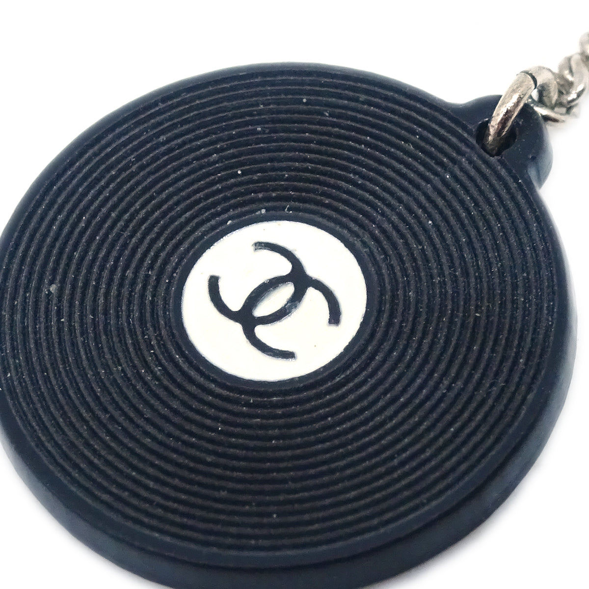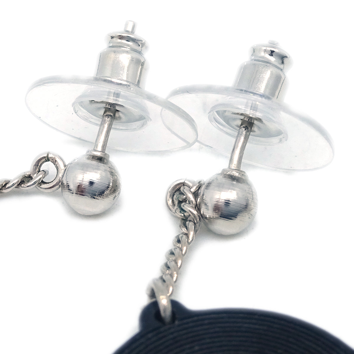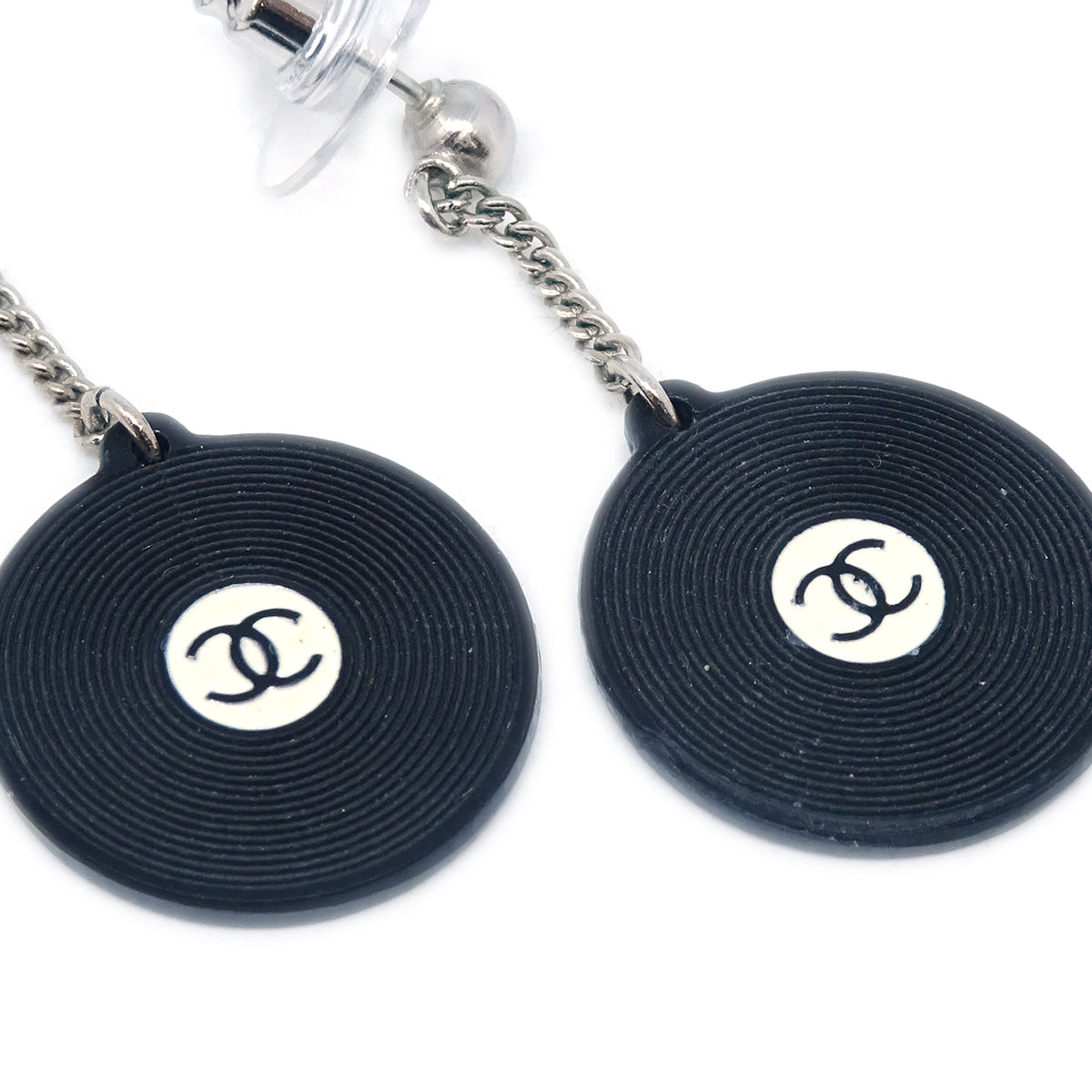 | Chanel Record Piercing Dangle Earrings Silver Black | |