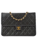 Chanel 1997-1999 Classic Single Flap Medium Shoulder Bag Black Lambskin