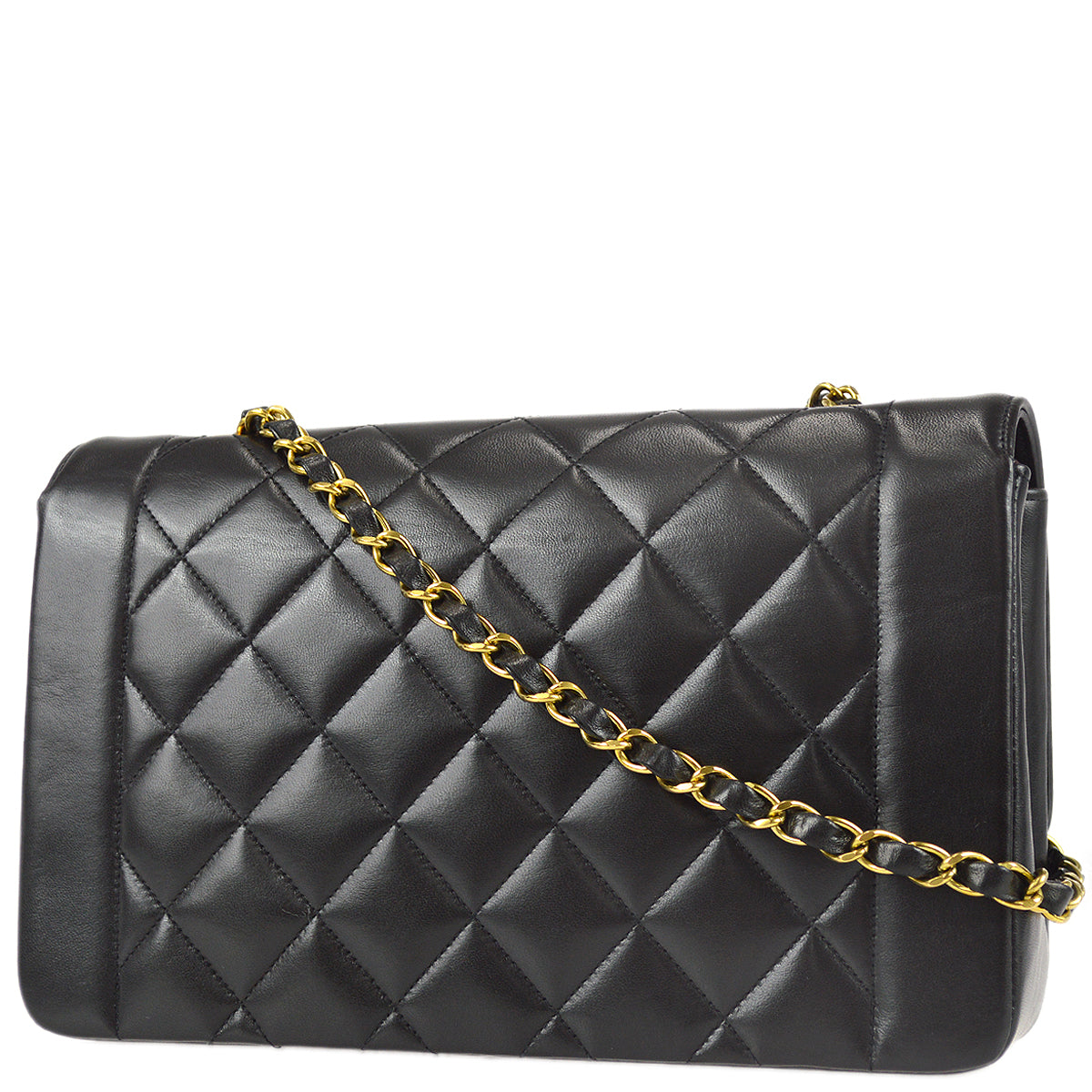 Chanel 1994-1996 Medium Diana Chain Shoulder Bag Black Lambskin