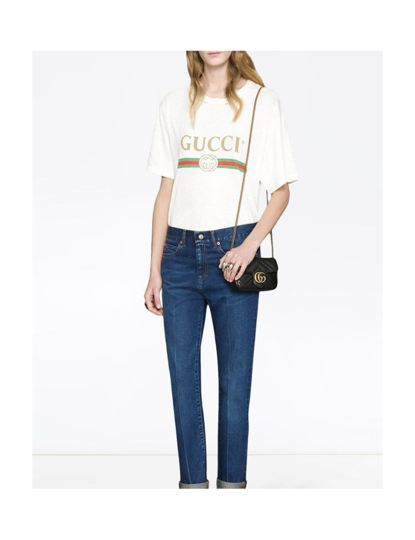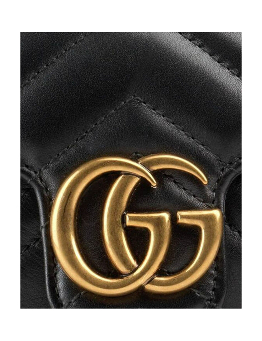 Black GG Marmont mini shoulder bag, quilted, chain shoulder strap, gold hardware, built-in logo applique. (This item is packaged in a dust bag or box)