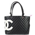 Chanel Cambon Ligne Tote Handbag Black Calfskin