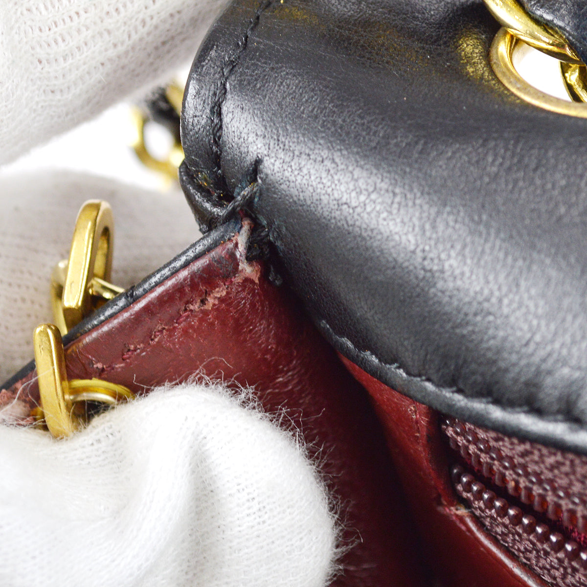 | Inside | Good condition Some scuffs and stains. There is tears around the hardware on the edges. |
