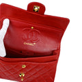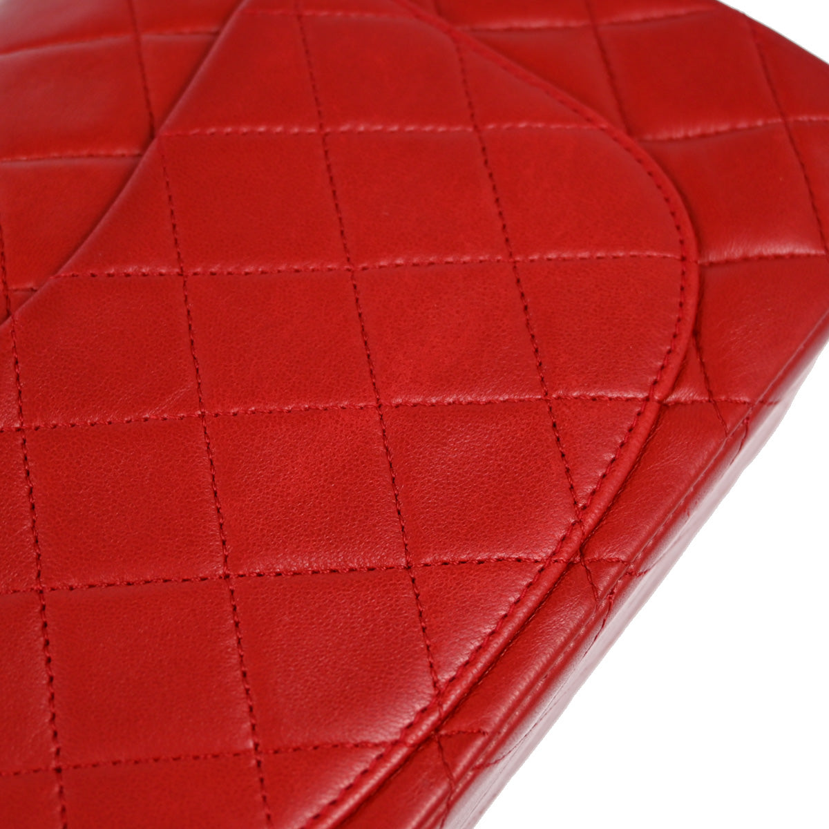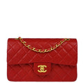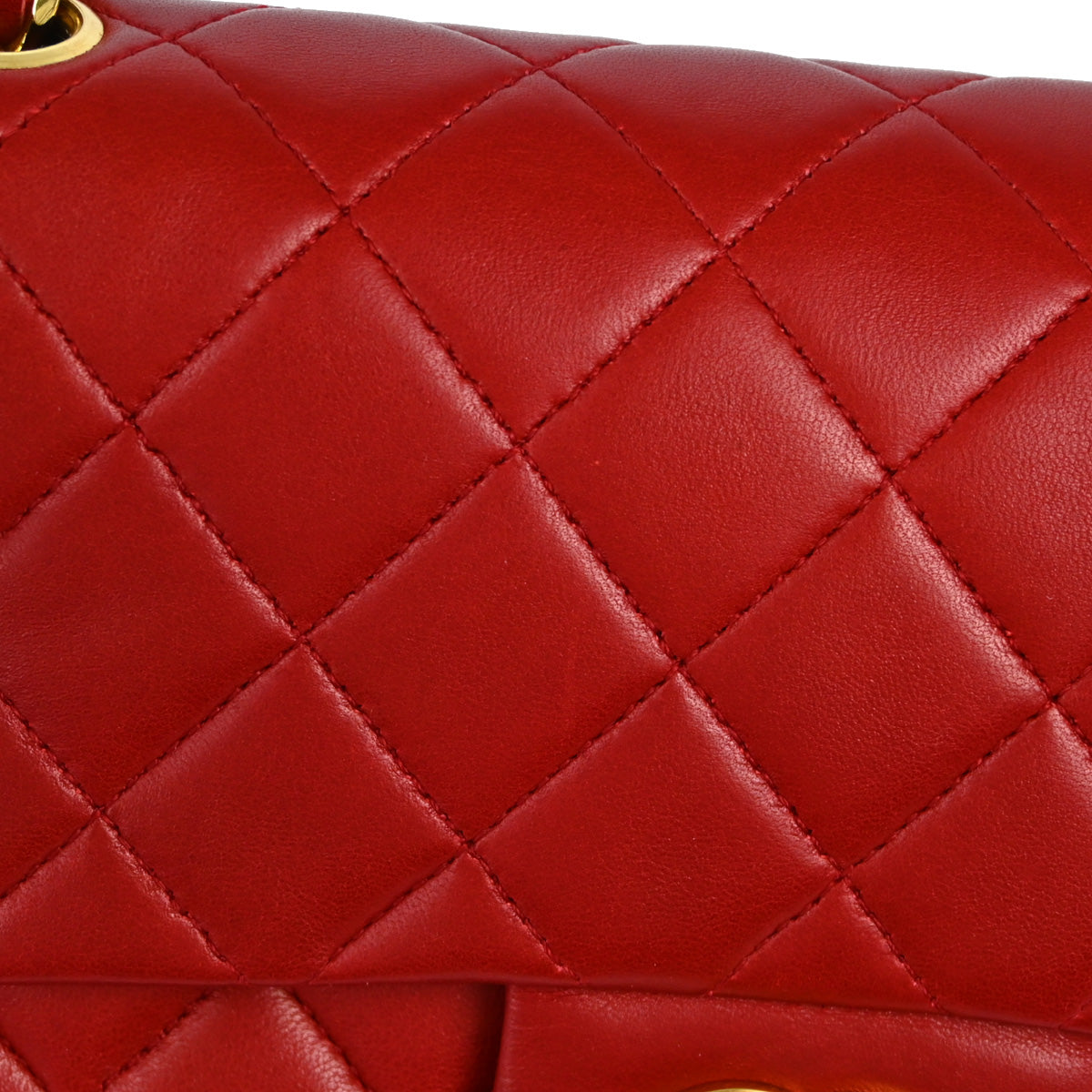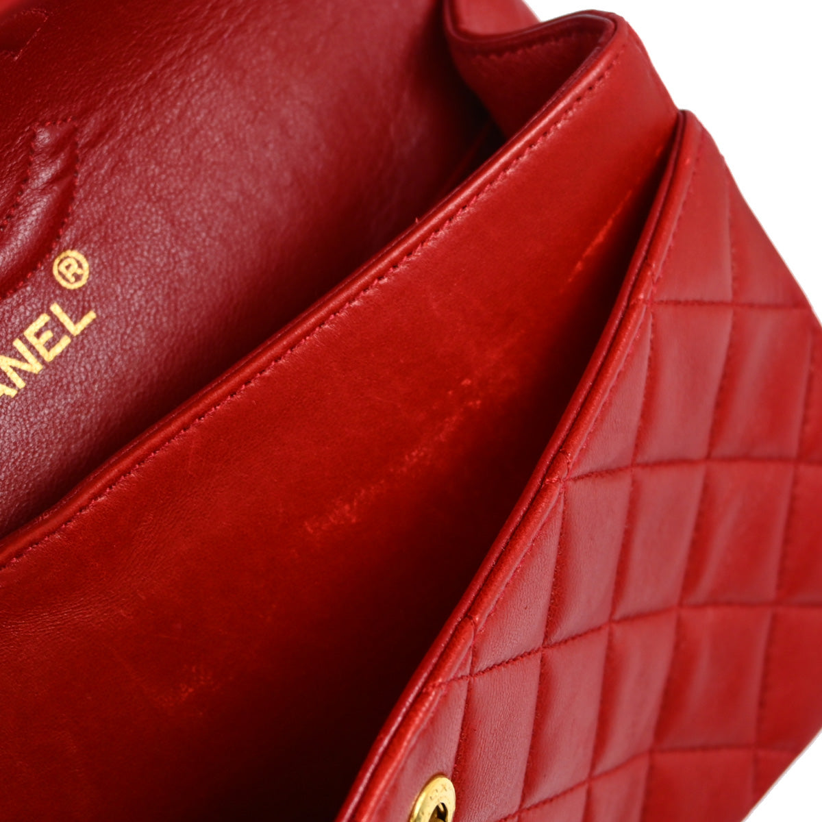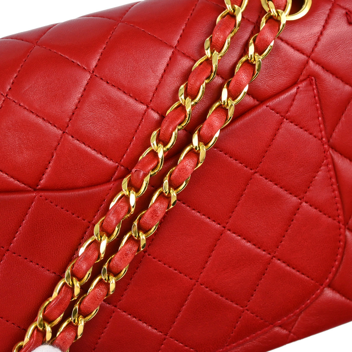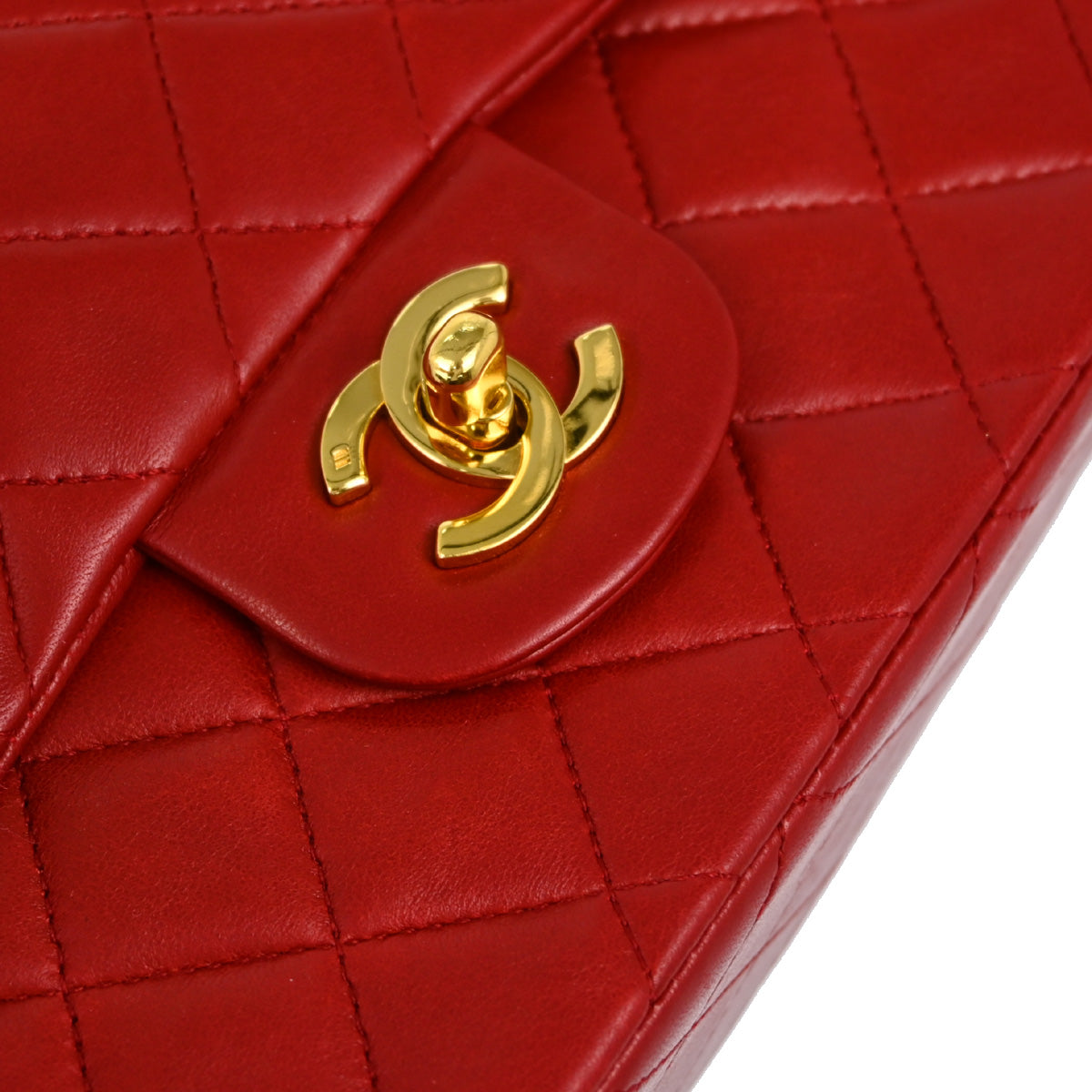 Chanel Red Lambskin Small Classic Double Flap Shoulder Bag