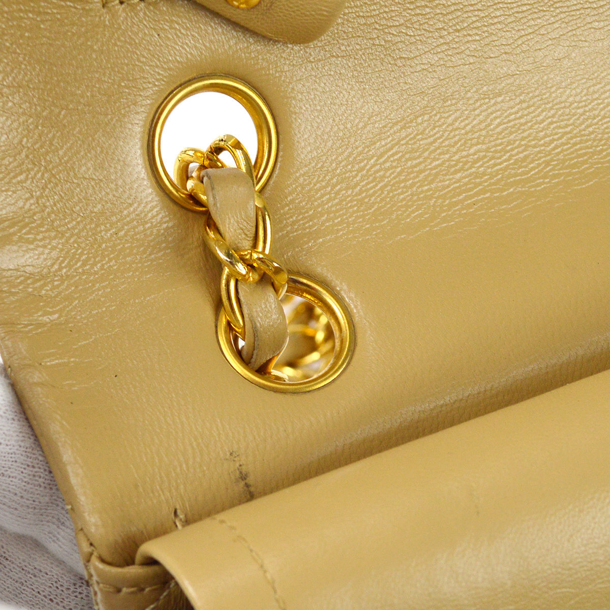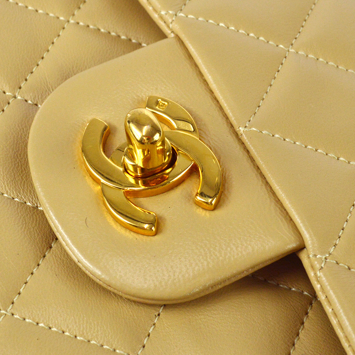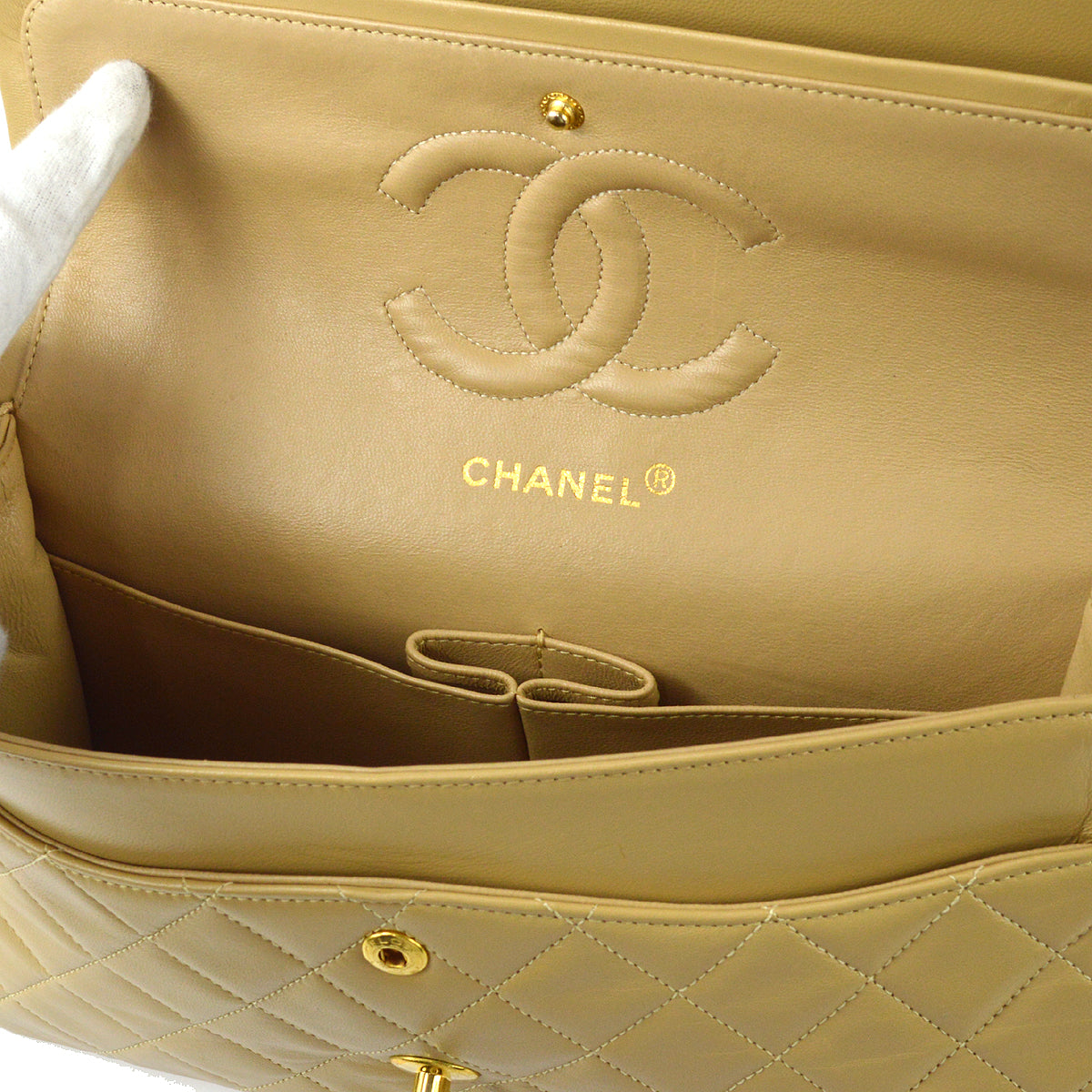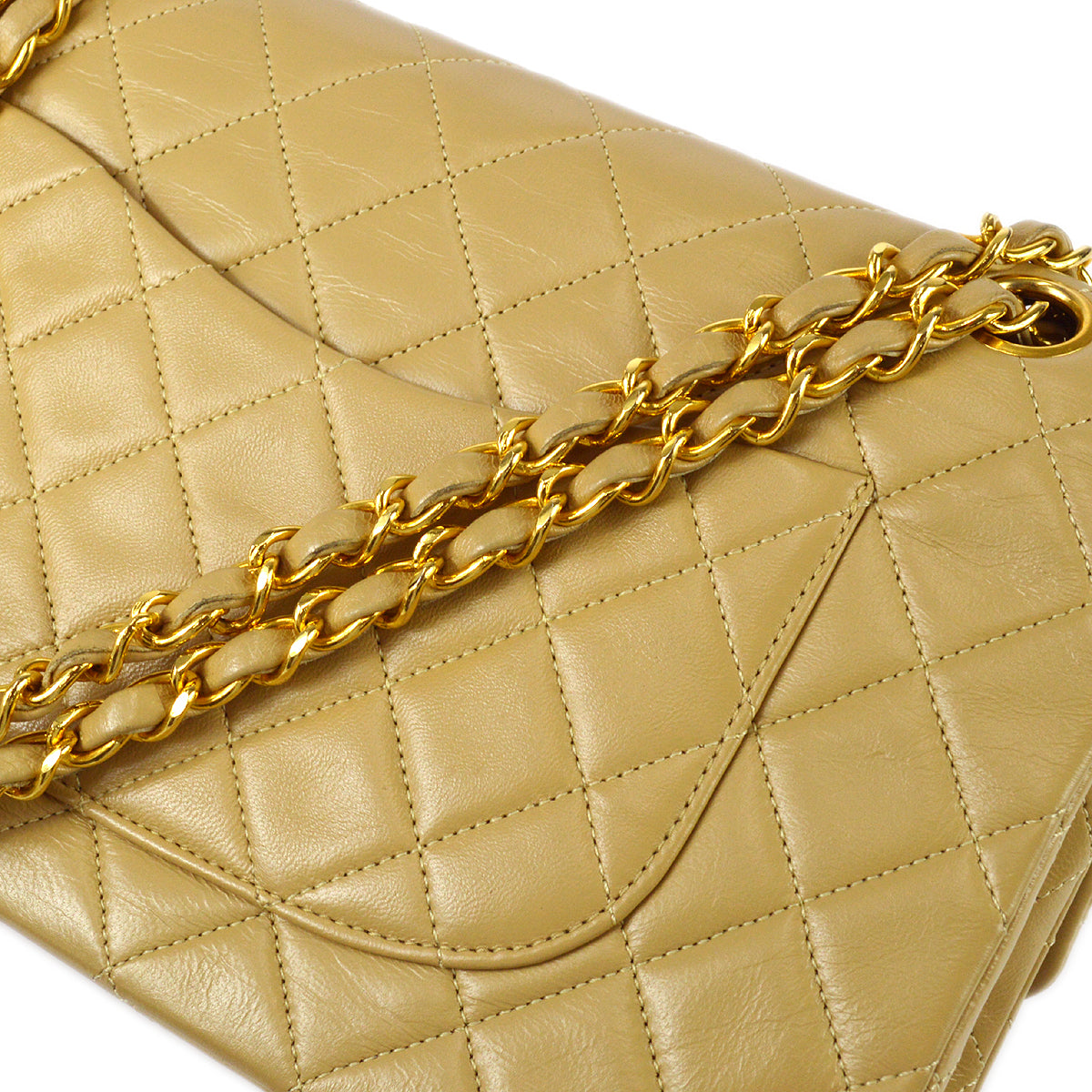 Chanel 1989-1991 Classic Double Flap Medium Shoulder Bag Beige Lambskin