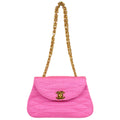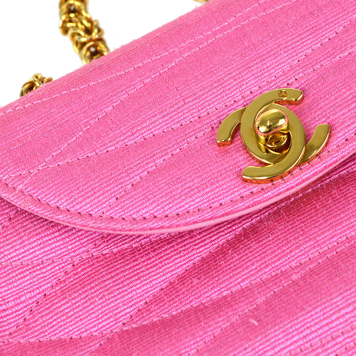 Chanel * 1991-1994 Diagonal Stitch Handbag Mini Pink Canvas
