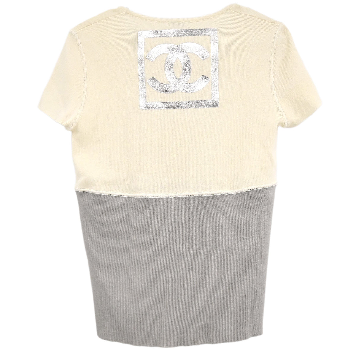 | Chanel Sport Line Short Sleeve T-shirt Top Ivory Gray 01P #44 | |