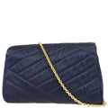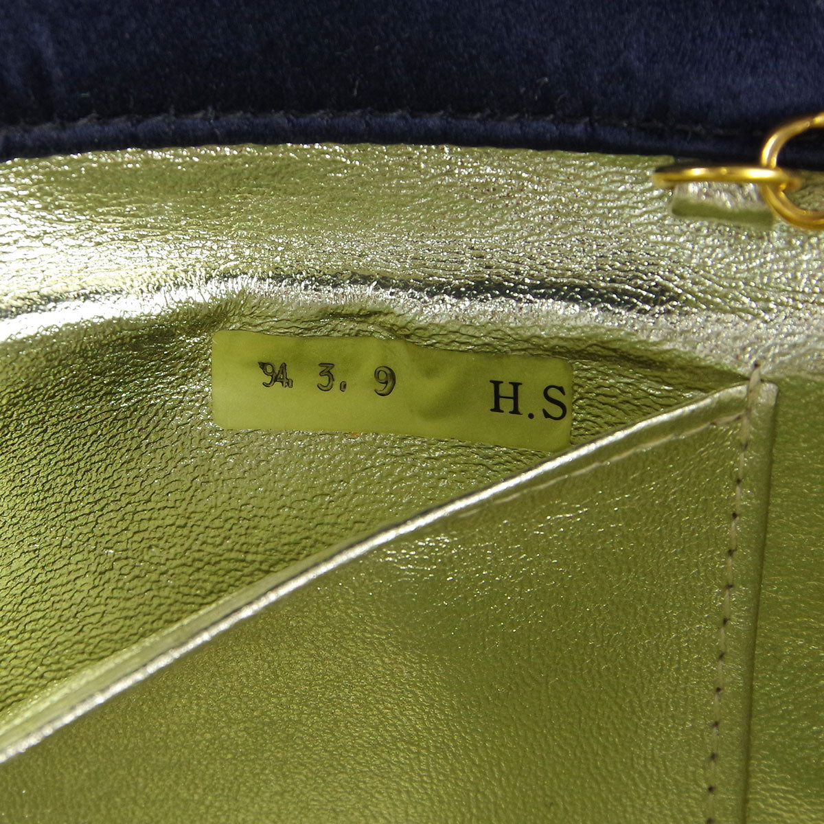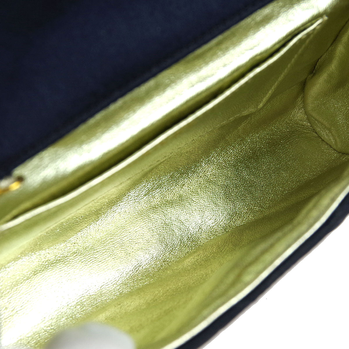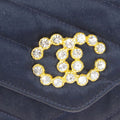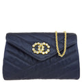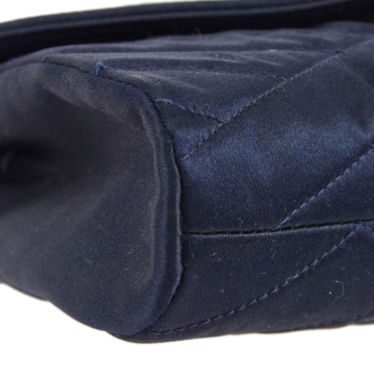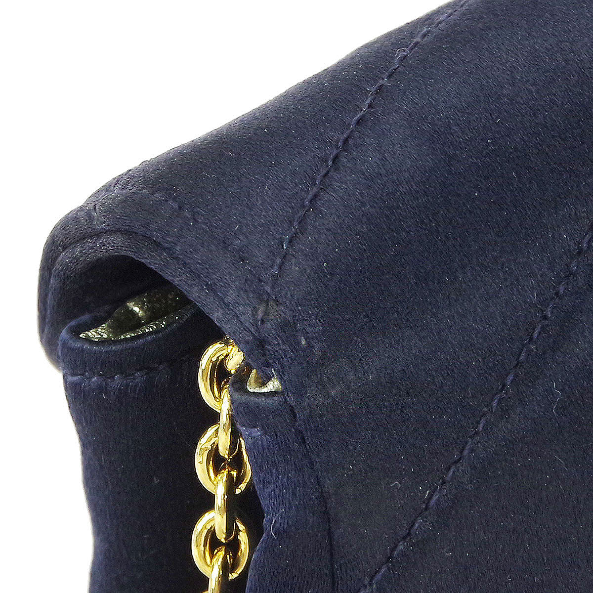 Chanel * Bias Stitch Rhinestone Chain Shoulder Bag Navy Satin