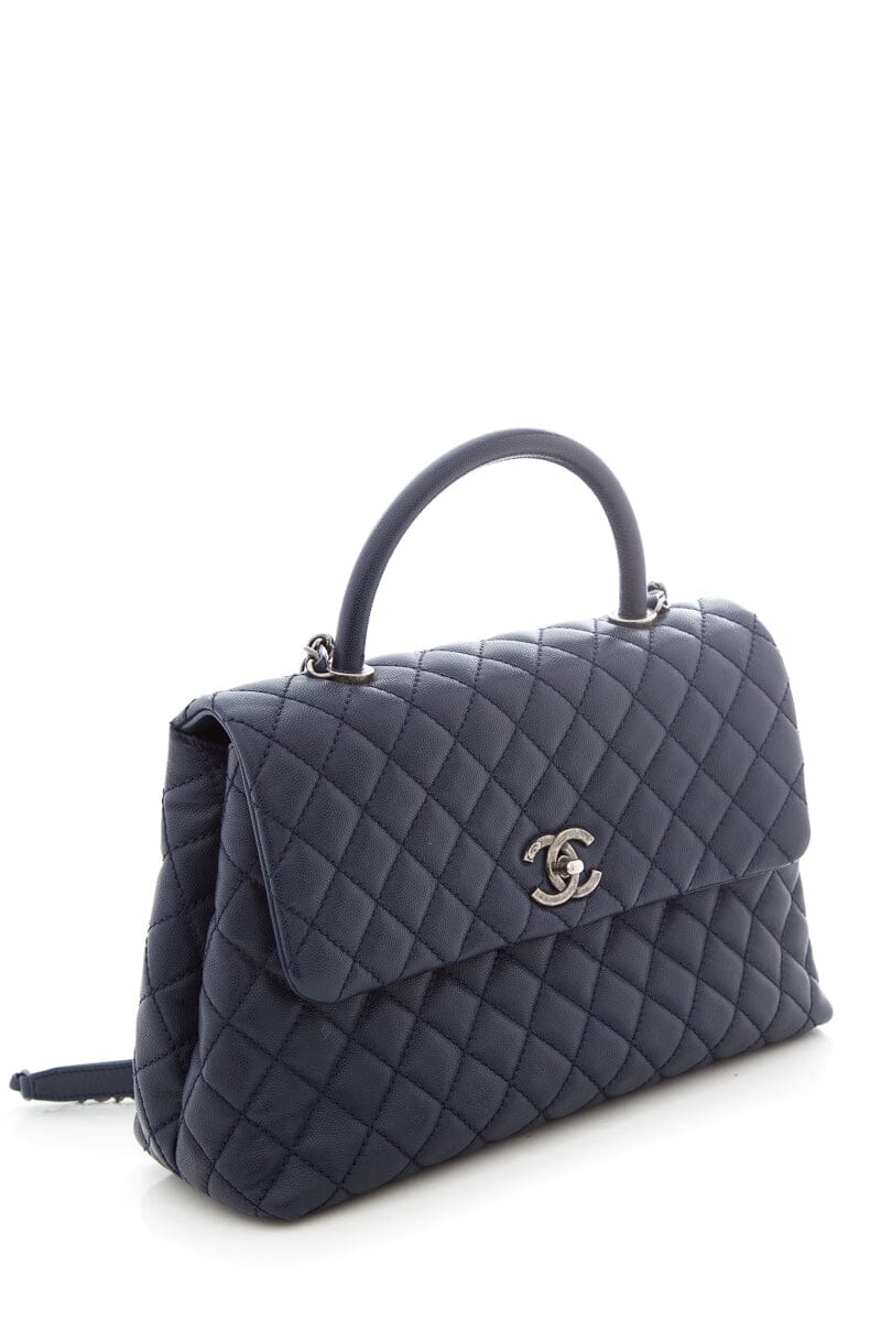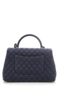 2016 Chanel Coco Top-Handle Navy Quilted Caviar Leather Handbag