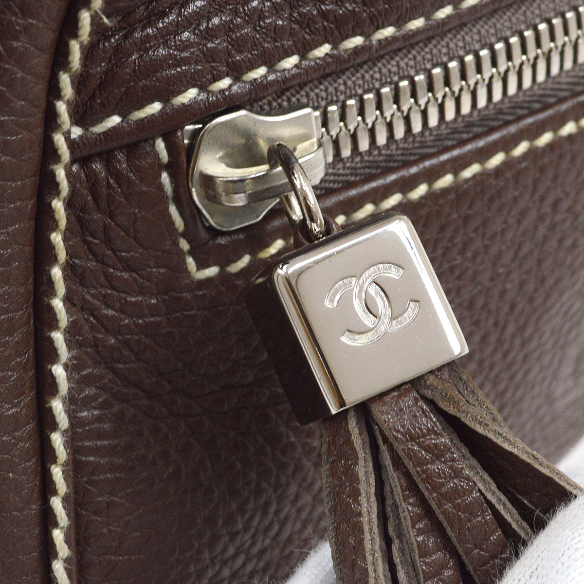 CHANEL 2003-2004 Brown Caviar Embossed Logo Shoulder Bag