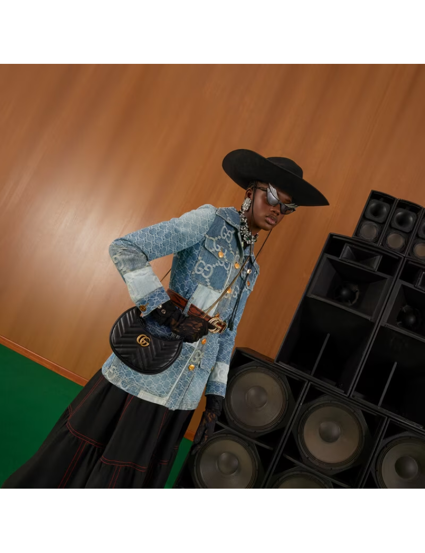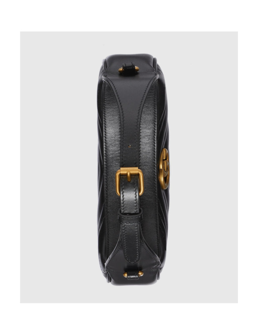 Gucci Black GG Marmont half moon shape mini shoulder bag