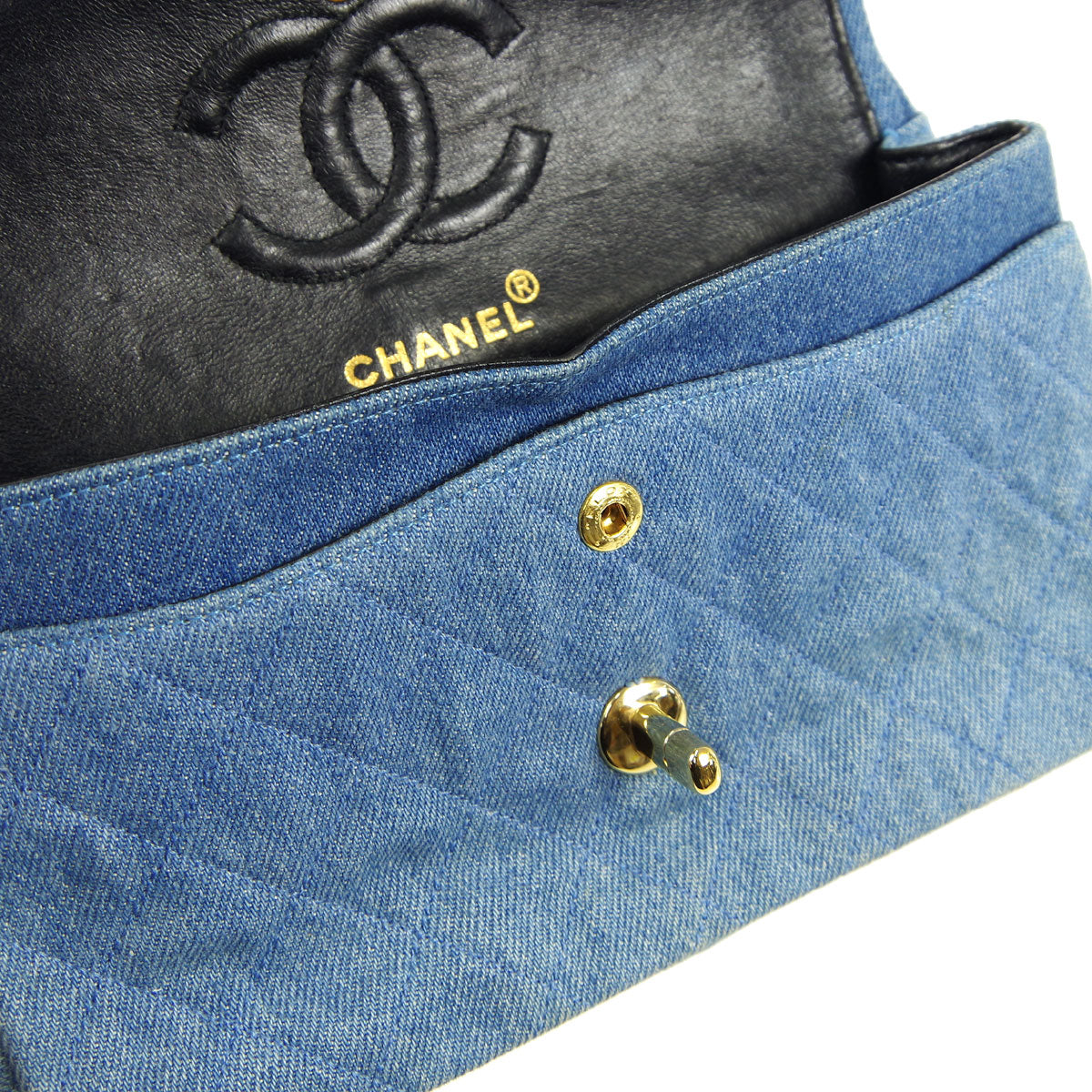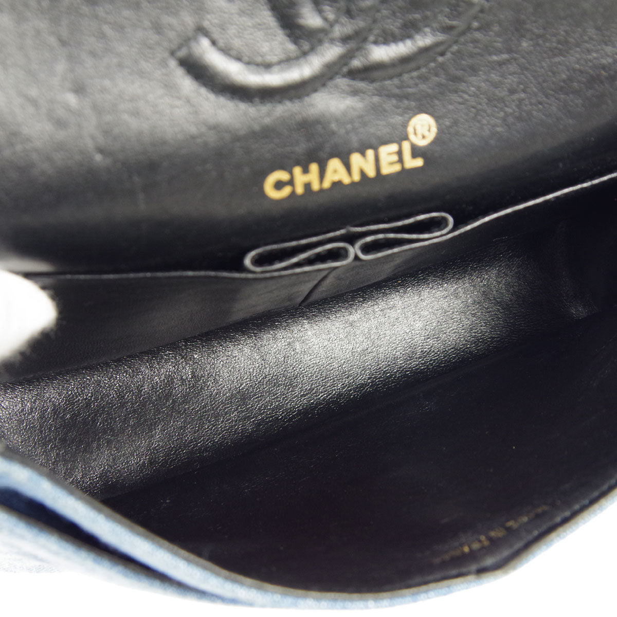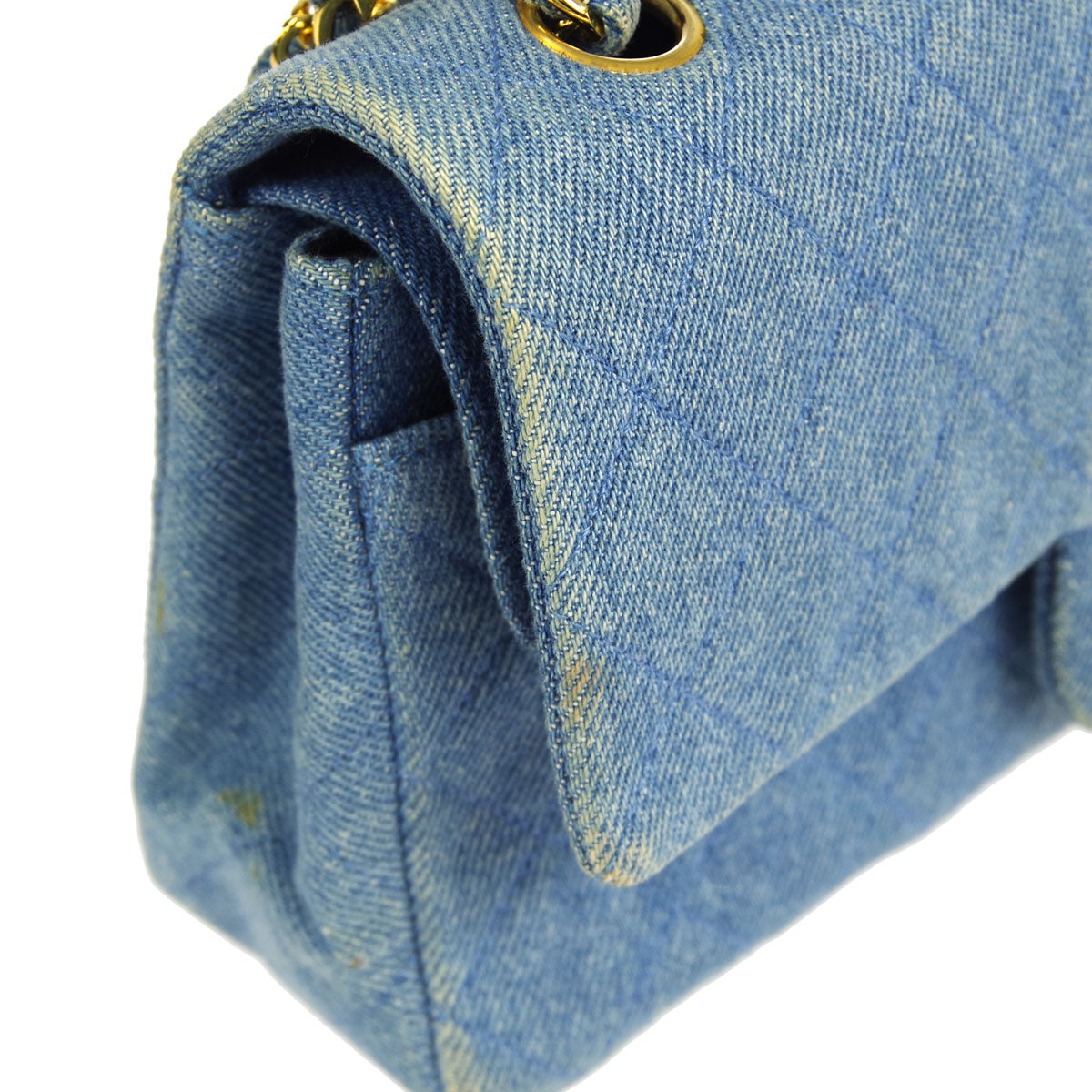 Chanel * 1989-1991 Classic Double Flap Small Shoulder Bag Blue Denim